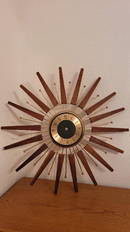 Lot 142: Vintage STARBURST Design Mid Century Modern Wall Clock (needs movement)