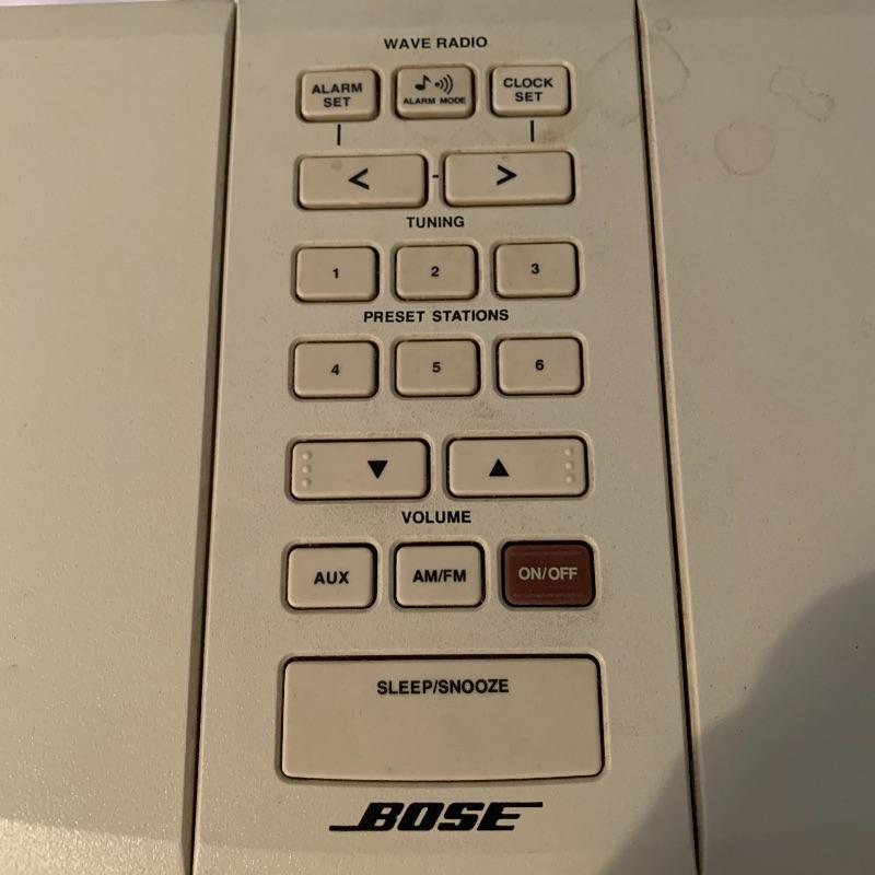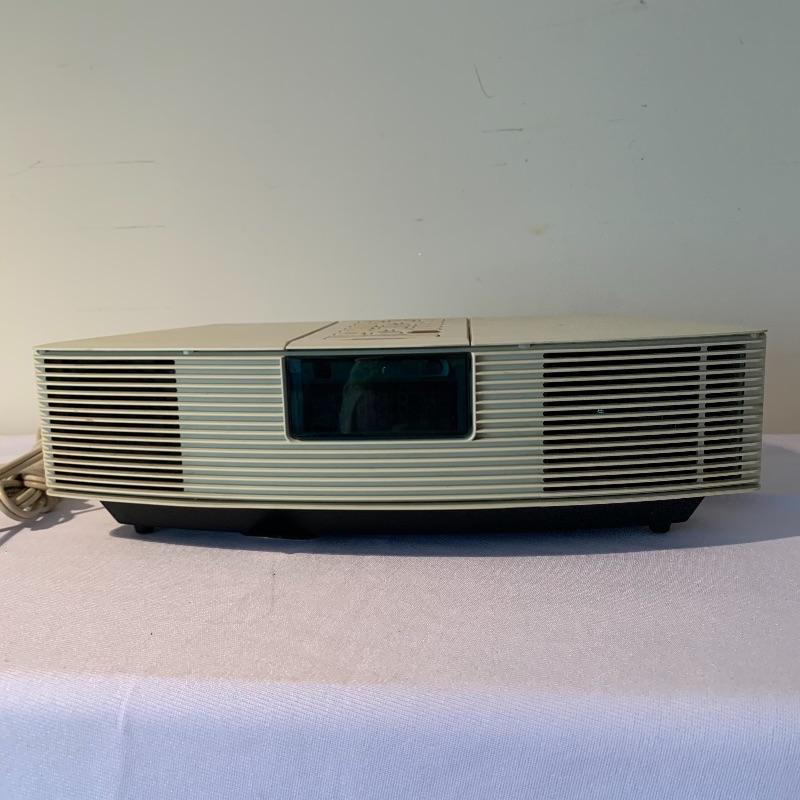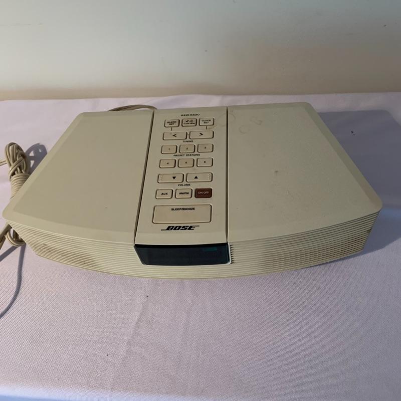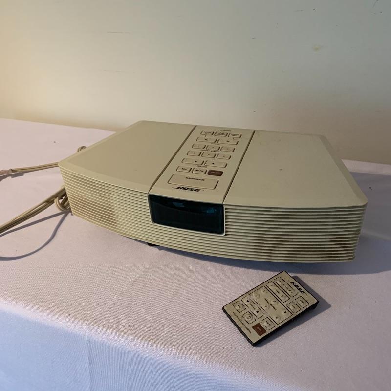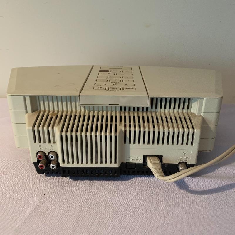This lot includes one Bose Wave Radio system and a matching remote control. The radio worked when tested and needs some outer cleaning. It measures about 14in x 6.5in x 4in. Local pick up only.