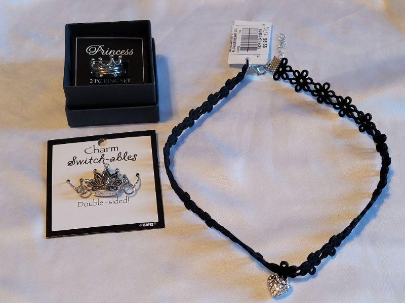 Lot 142: New Choker Necklace, Switchable Charm and Princess Crown Rings