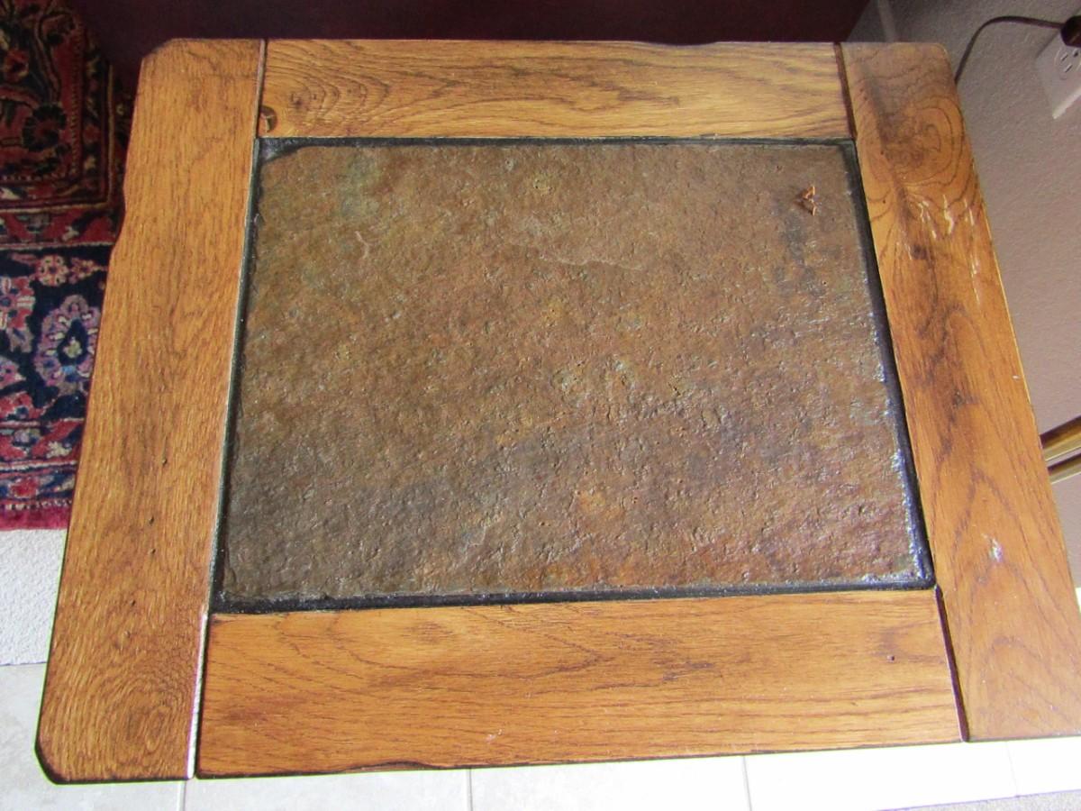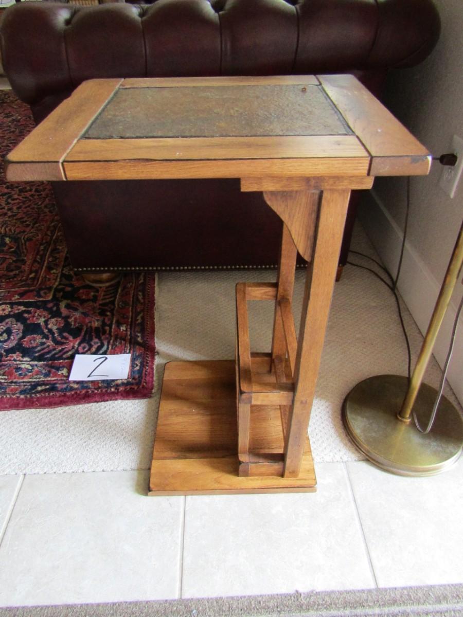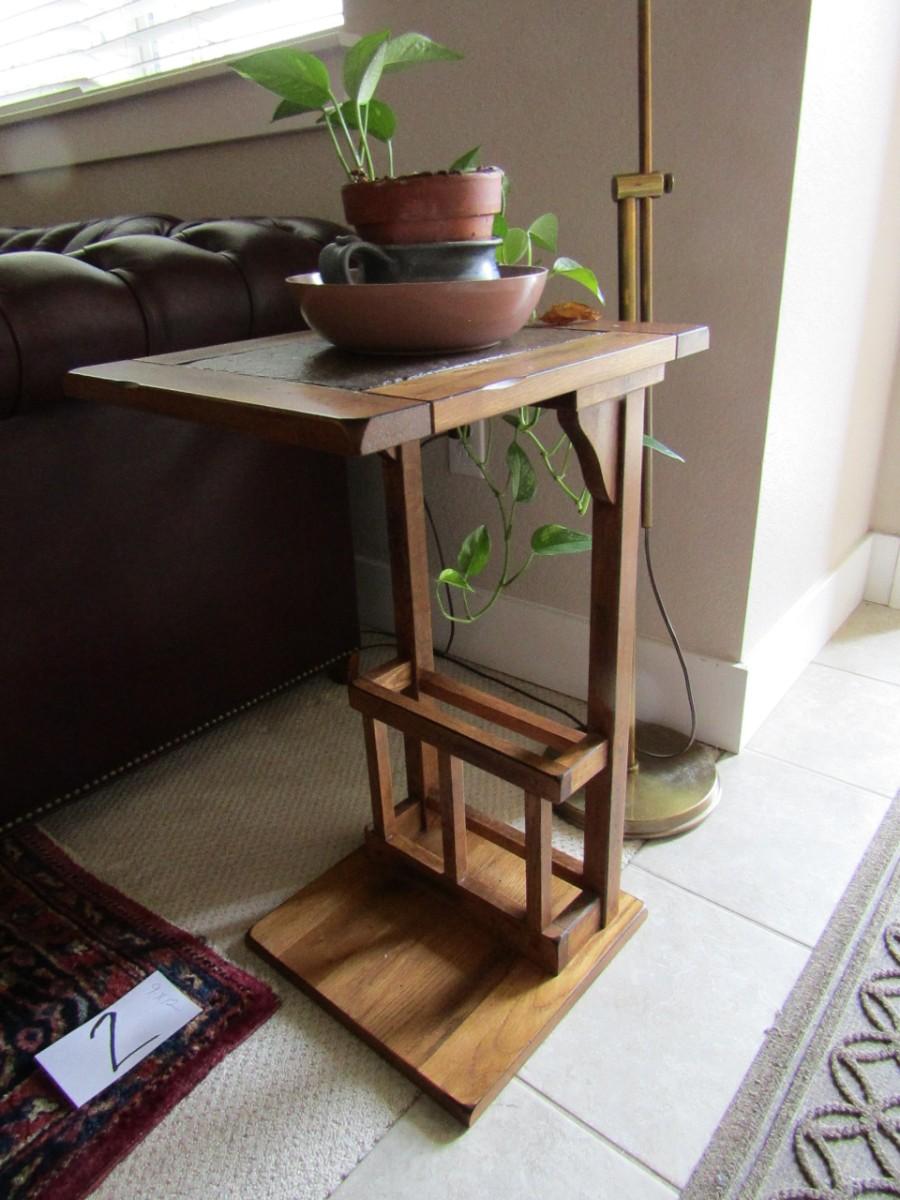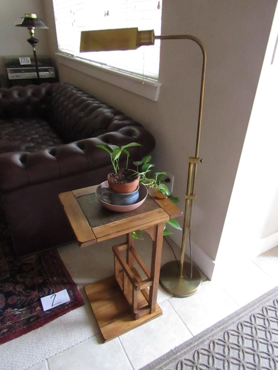 PLANT STAND / SMALL TABLE 12.5" X 15" X 24" WITH PATHO'S PLANT AND 47" TALL PHARMACY FLOOR LAMP