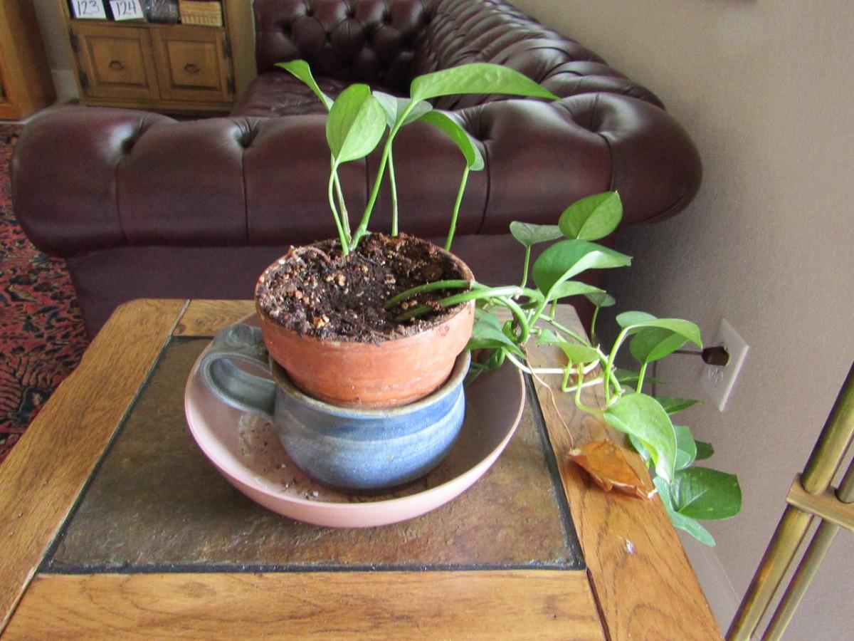 LOT 136 PHARMACY LAMP, SMALL TABLE, LIVE PLANT