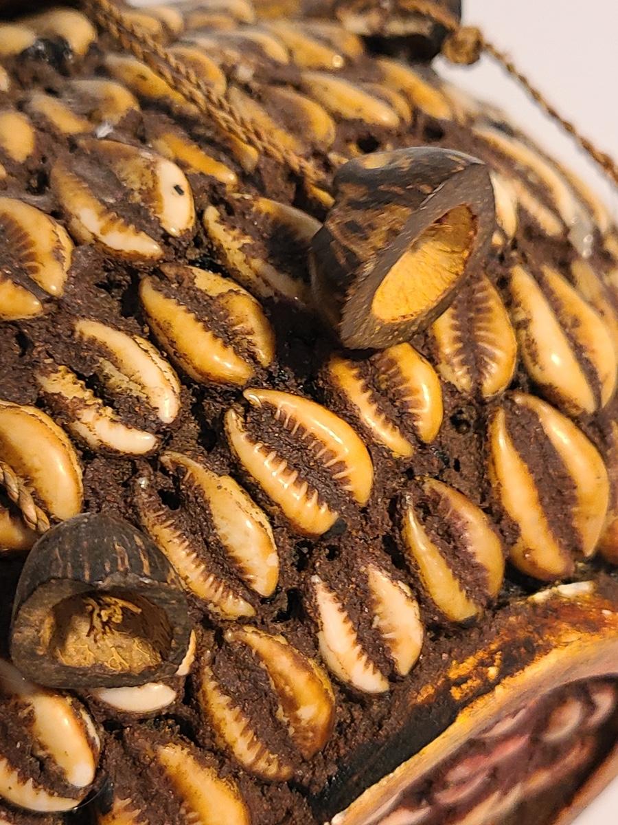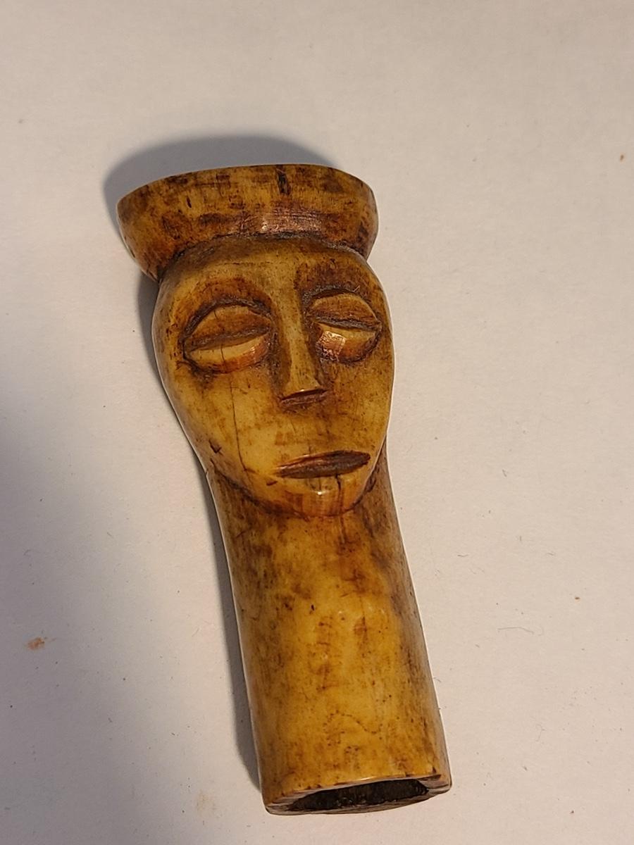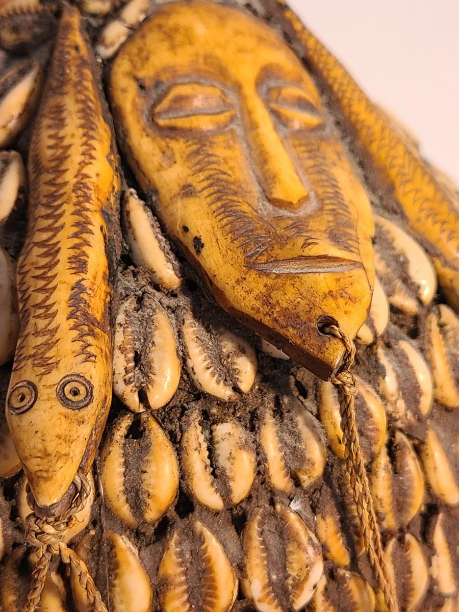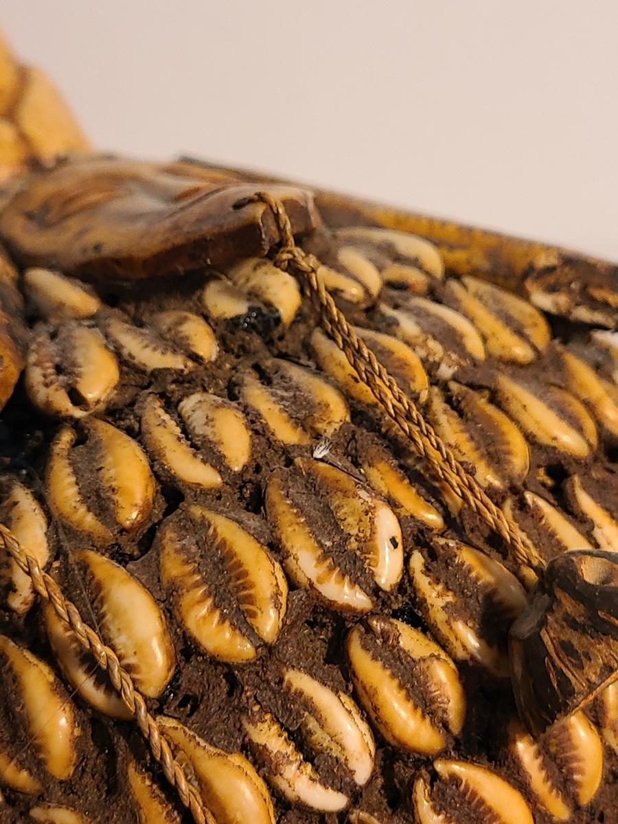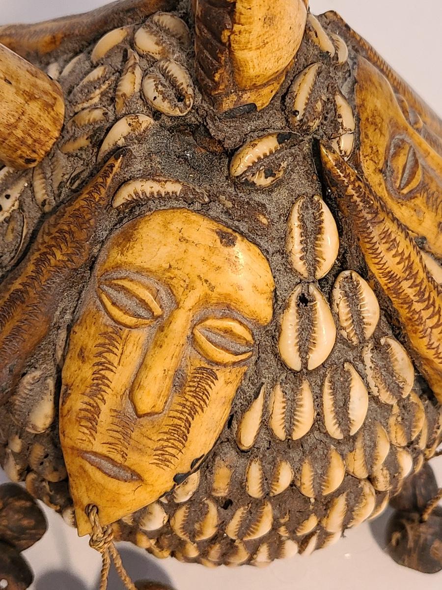 This unique item is most likely a vintage water bottle or form of water pipe made in Africa, out of mud, bone, and shells. Designed with a body on top, faces and snakes on side. Most likely the central part is a gourd. Only two others found on line for reference. Please see all pictures as they are the best representation of the items. The pictures show condition, measurements if taken, and what is included in the lot. Due to the large amount that we photograph and the time frame, we are not always able to take measurements. All items unless noted, are pre-owned and have been used. If you purchased furniture, you must bring help. We do not allow one person to carry large furniture out on their own. Bring help, tools and a truck for the safety of our client’s homes, and your personal safety. Company policy. Thank you.
