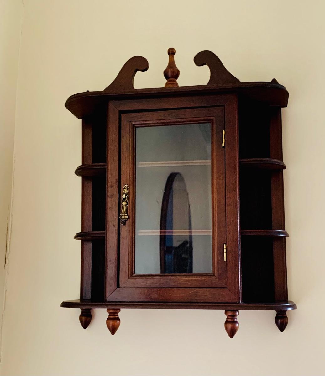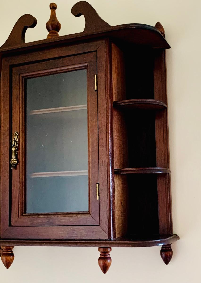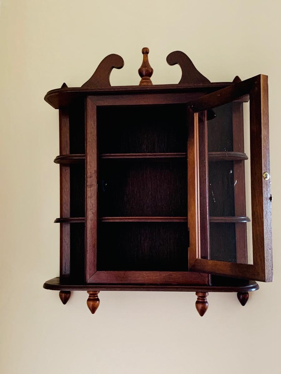 Lot 142: Vintage Wooden Curio Cabinet (Wall Mount, or Table Stand Option)