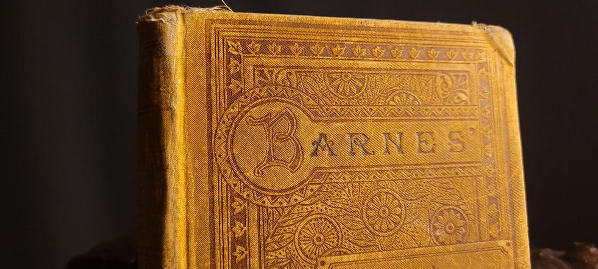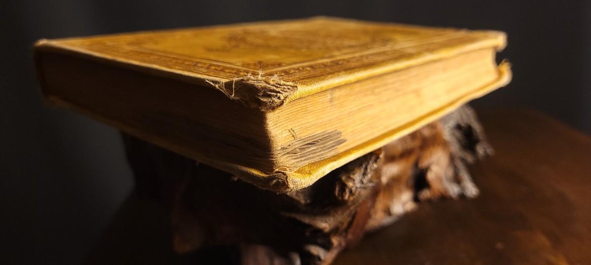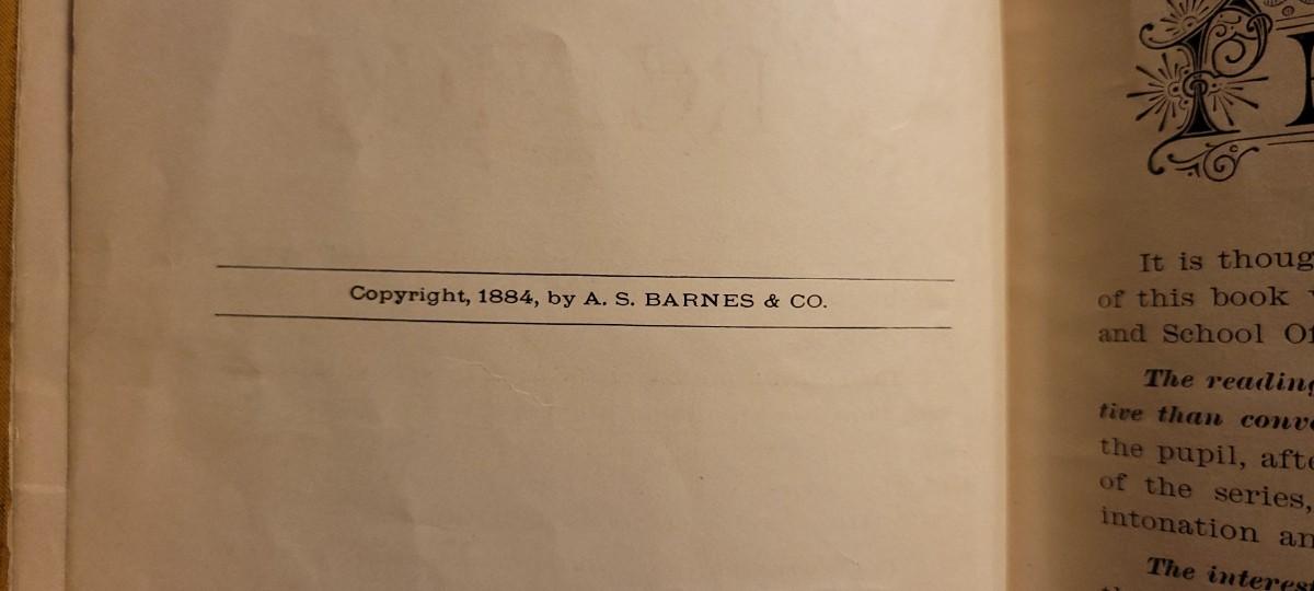 This New National Readers No. 4 1884 Edition was printed by A.S. BARNES & Company. It does show some very old water damage towards the top of the pages that is dark in color.