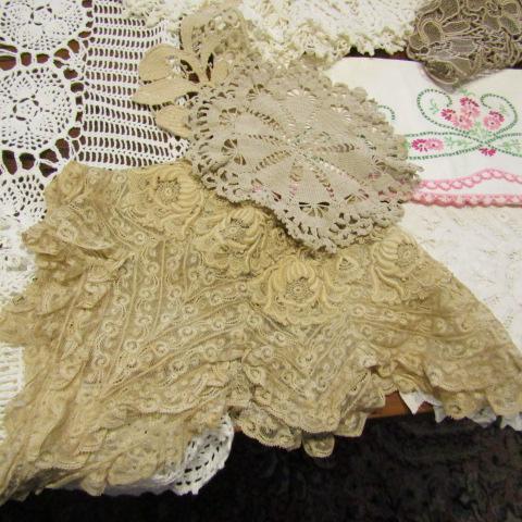 90% OF THIS LOT IS HANDMADE VINTAGE TABLECLOTH AND DOILIES