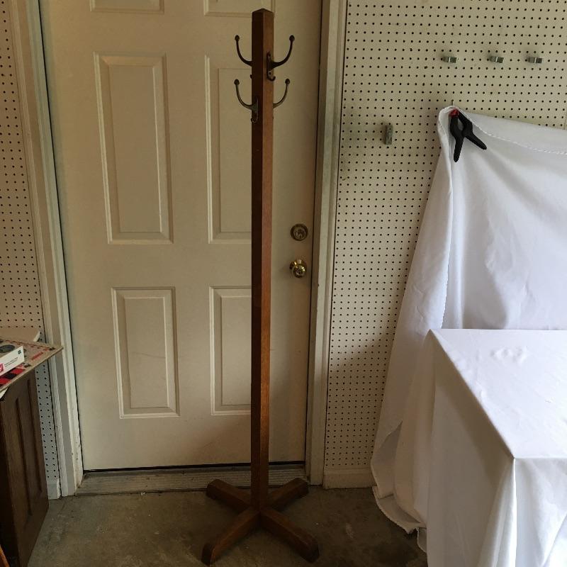 Lot 142 - Antique Trunk & Oak Coat Rack