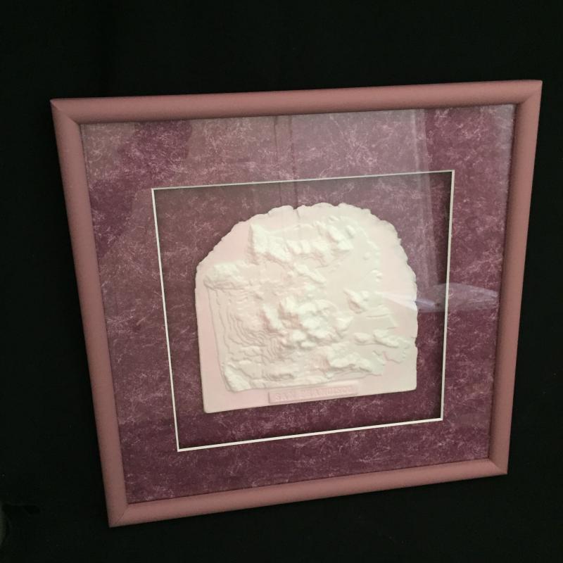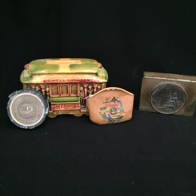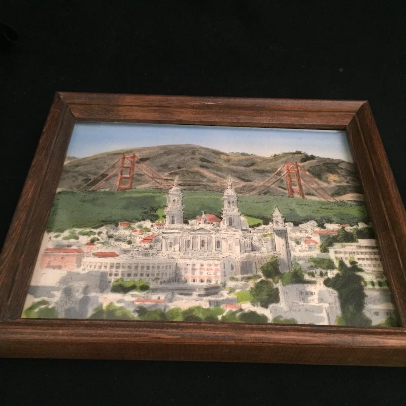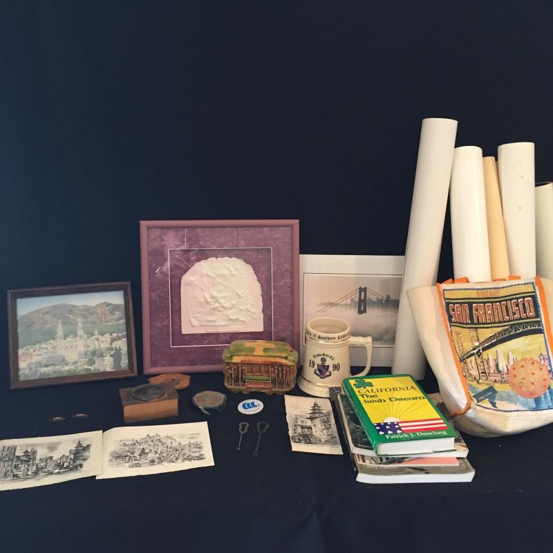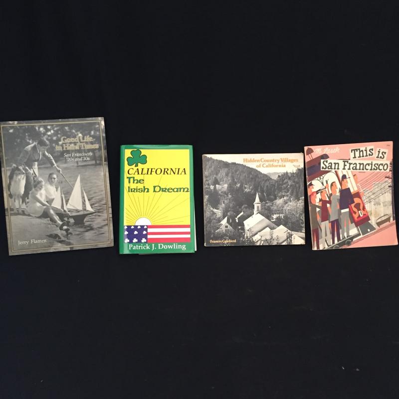 Assortment of California Bric a Brac. Art, Mug, Books, Posters and More. Largest Framed Art Measures 15” x 14.75”.