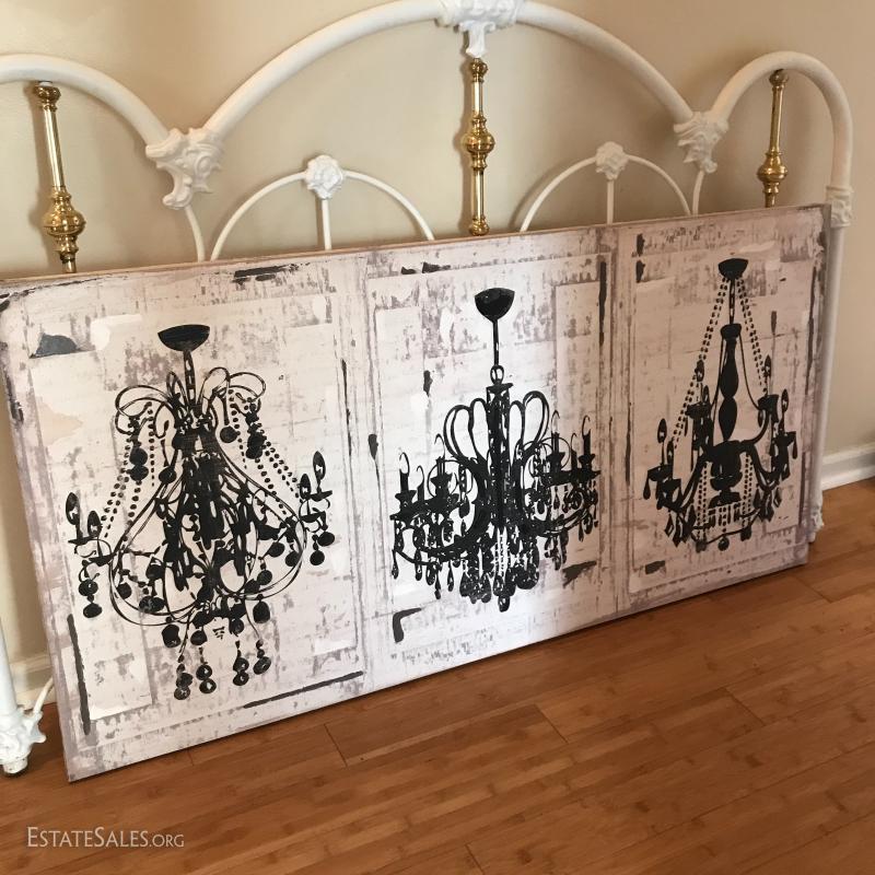 Lot 142 - Chandelier Canvas Print and Headboard