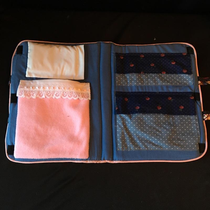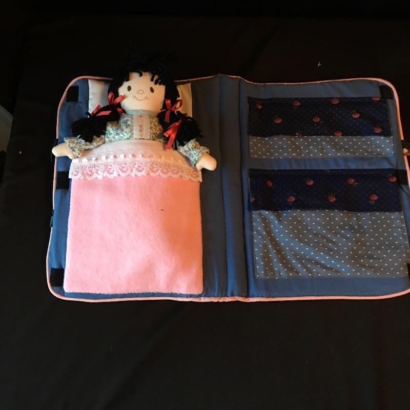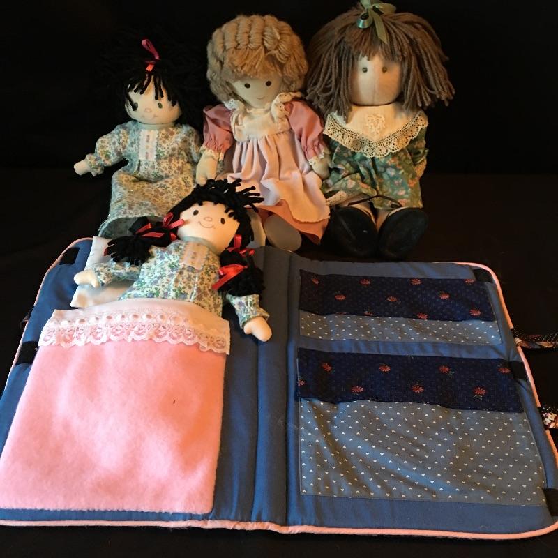 Cloth dolls includes four cloth dolls in different styles and clothing and one doll bed / carrying case. A great gift for the doll collector in your life, or treat yourself. Tallest doll measures 14” tall.