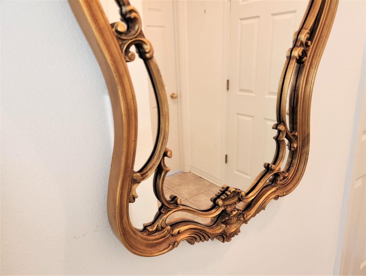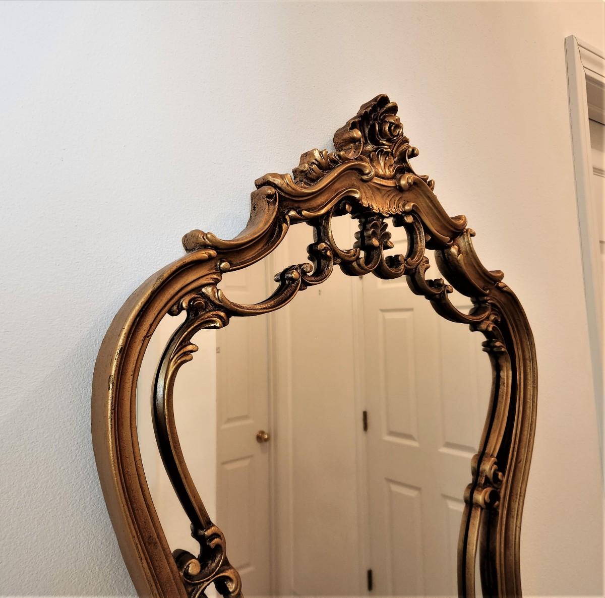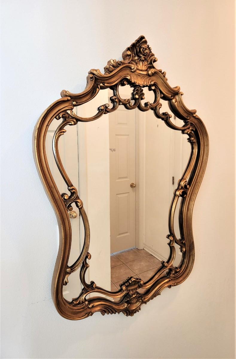 Decorator mirror - frame is resin/plastic, dark gold gilded finish. 34" x 24".