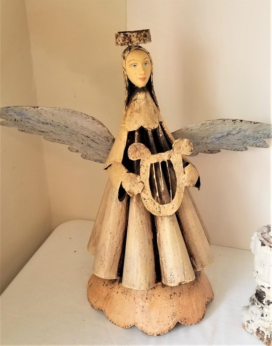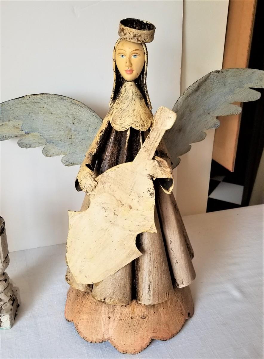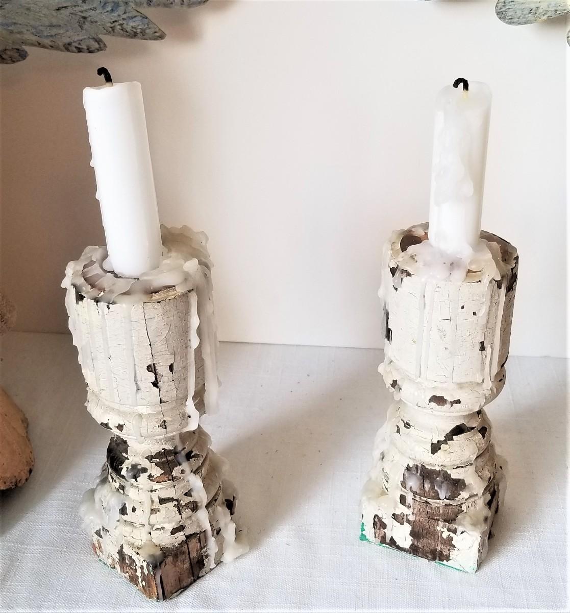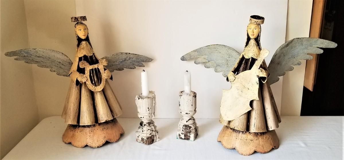 At Christmas time or any other time - pair of contemporary home decor angels (wings are removeable) and a pair of shabby chic candlesticks. Angels are 16" tall, candlesticks 6.25" tall.