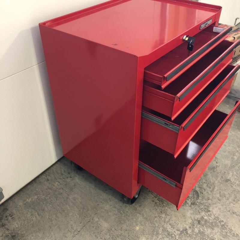 Have a place to store your tools with this Craftsman four drawer locking tool chest on wheels.