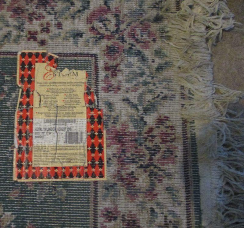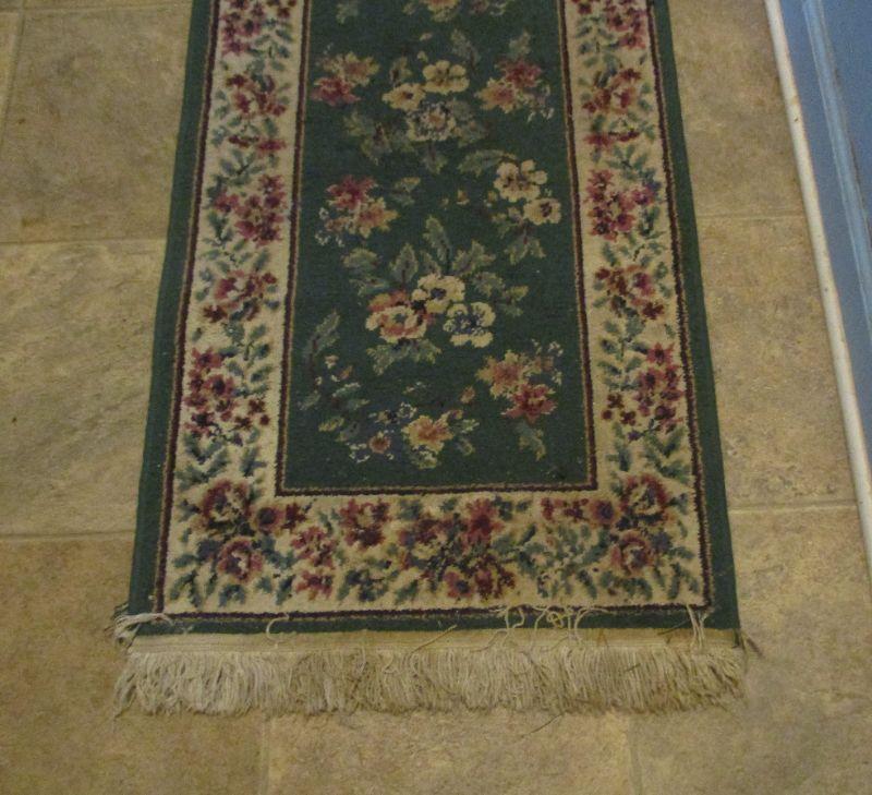 This is made from "heat set olefin" and is 2' x 8'. Could use a little cleaning, but doesn't appear to be stained and is in good overall condition.