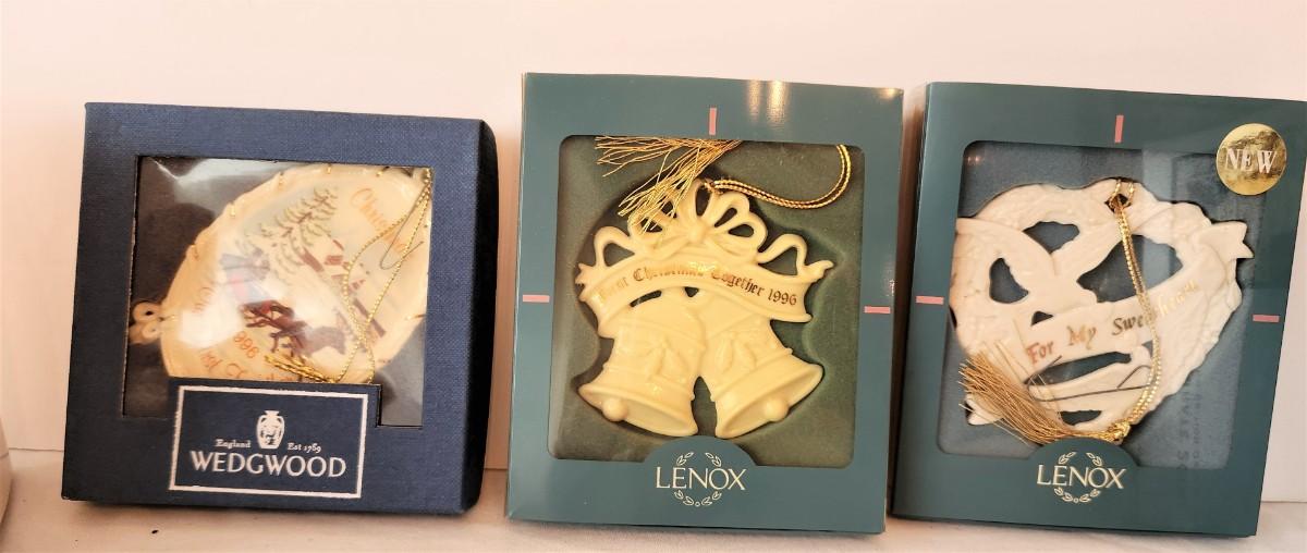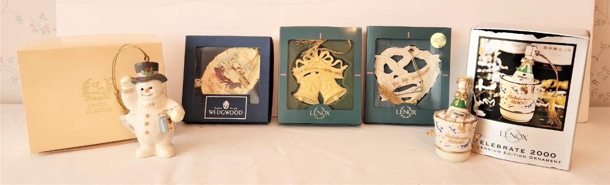Lot #142 Four LENOX Ornaments - 1 Wedgwood - with boxes