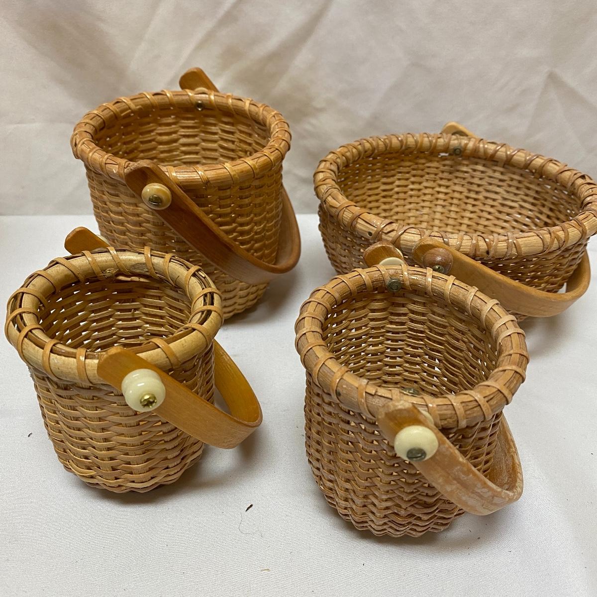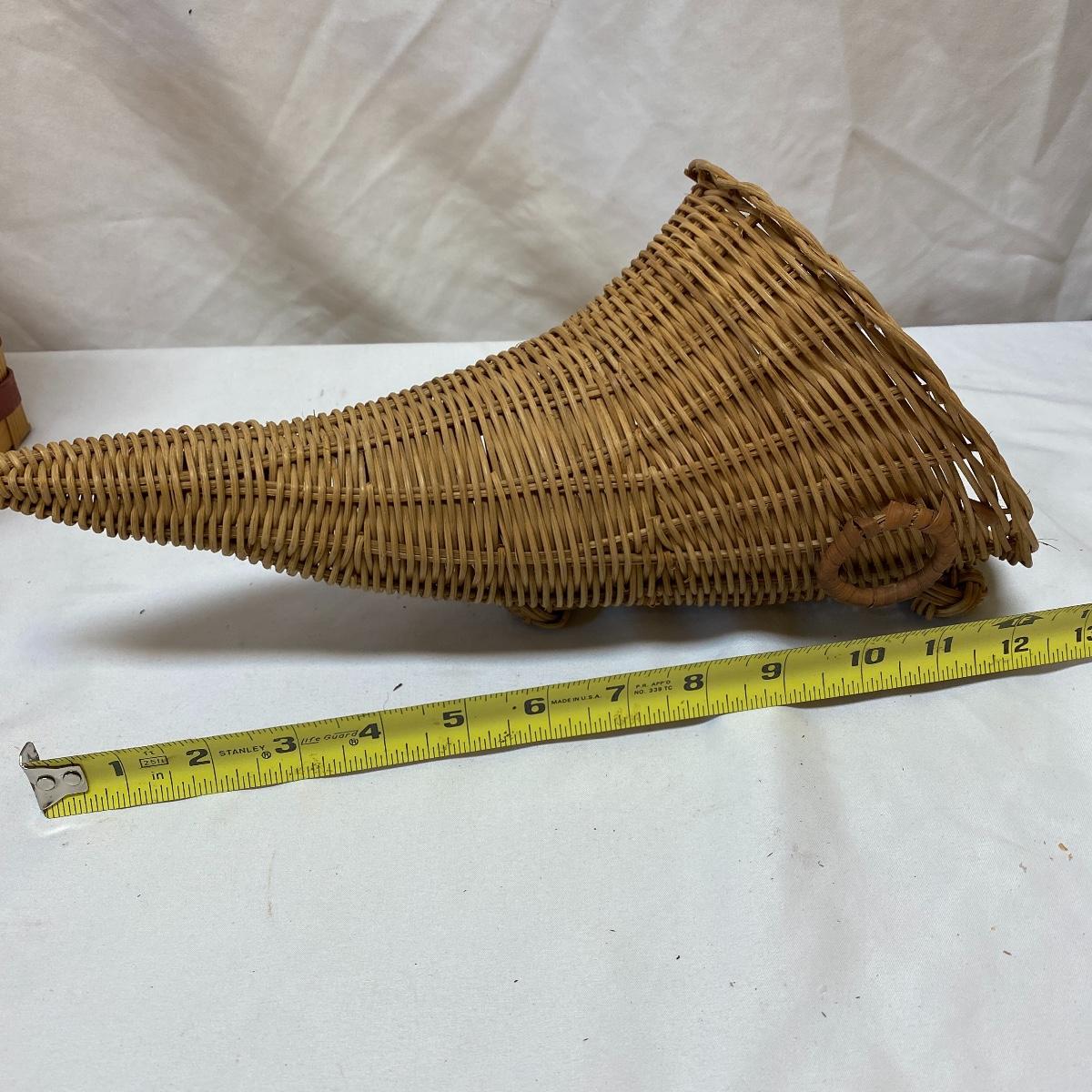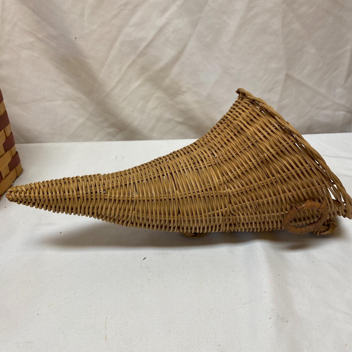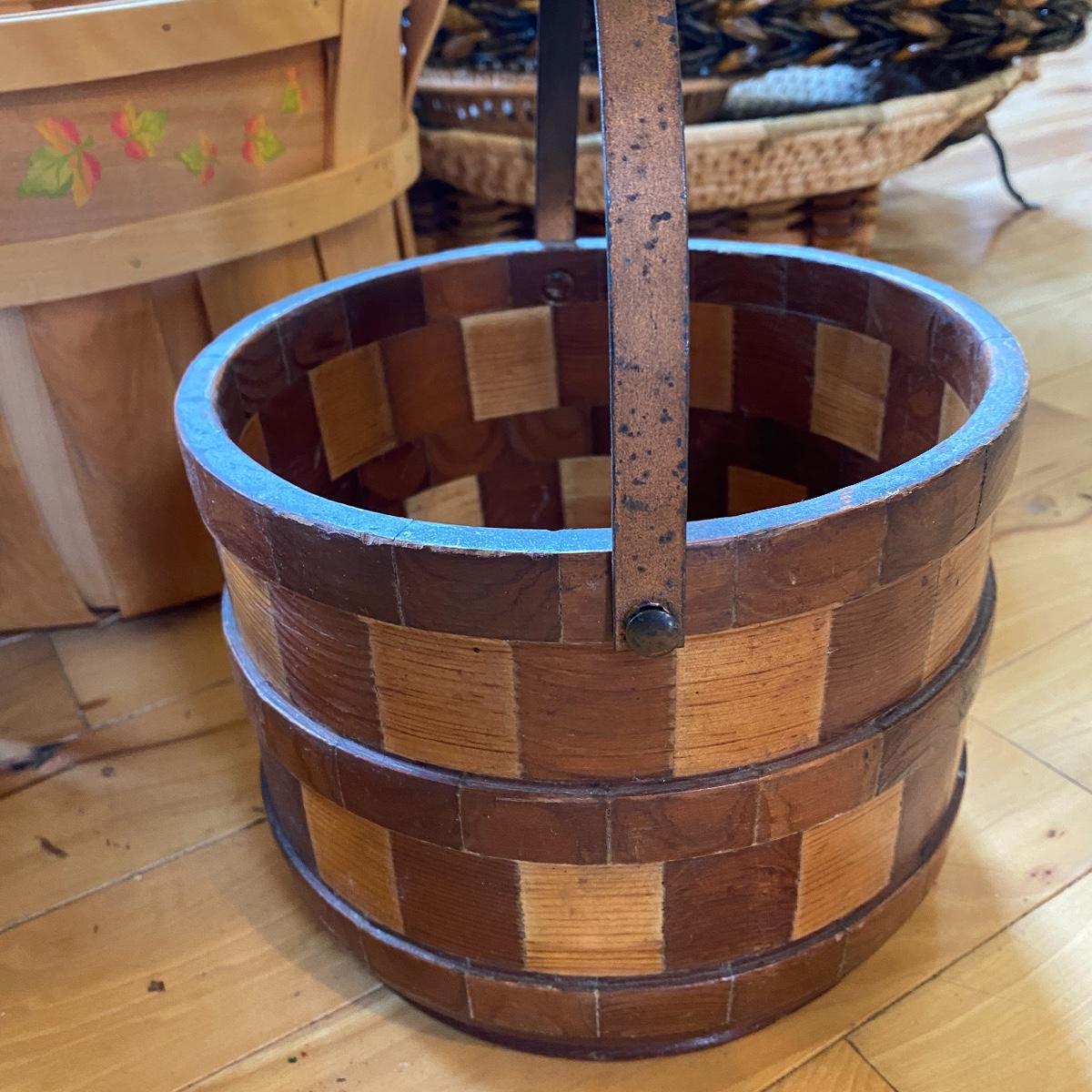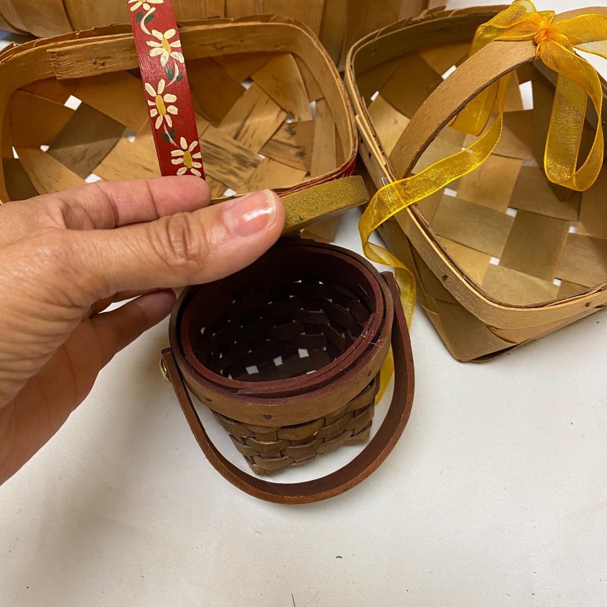 Lots of excellent baskets in the lot. Some have handles. Some have metal. There are a ton of tiny miniatures. There is a nice variety here. There are even two platter sized ones that can be hung on the wall to stay with the trends. Largest platter is. 14.5” diameter. Lot also includes an unsigned piece of framed art with a basket as the centerpiece. It measures 23” x 19”. There is a variety of shapes and sizes here so come take a look at all the baskets included in this lot during preview. Local pick up only. The pink bin full of small baskets is included to help with transport. Local pick-up only.