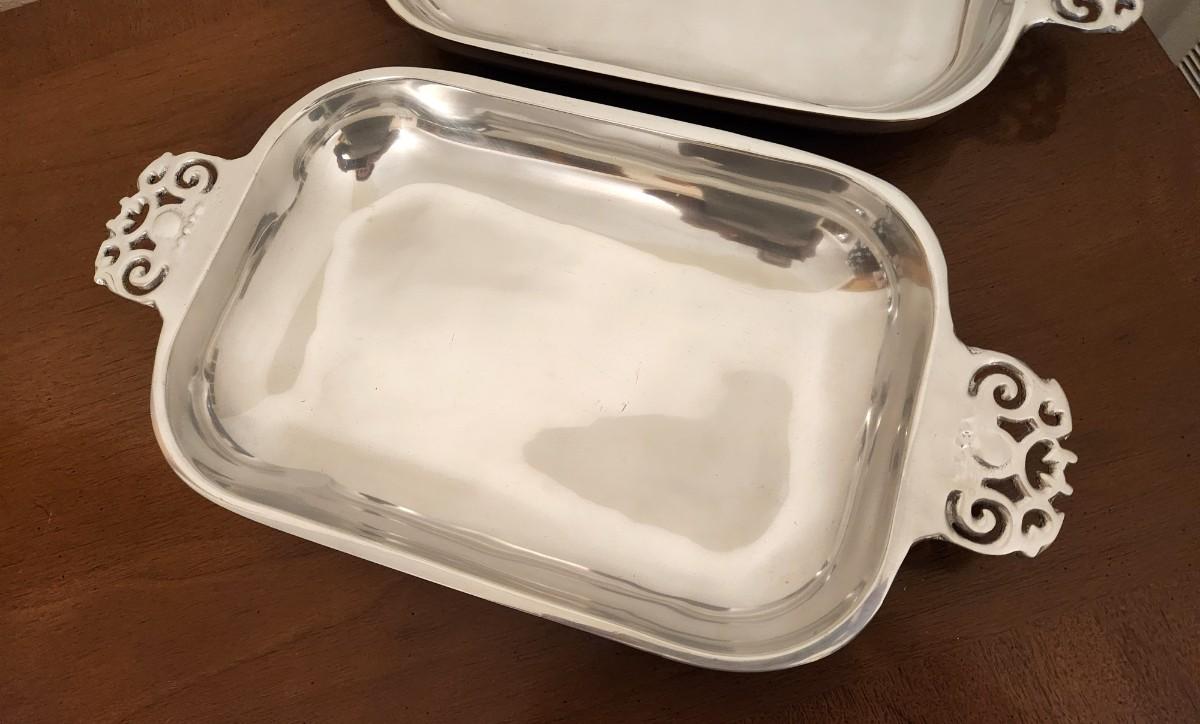 Lot of 2 nice Nambe Rectangular Serving Dishes 10" x 7" x 2" - Made from a metal alloy that will never chip or tarnish. This brand tends to be rather pricey - each of these dishes retails for $40.00.