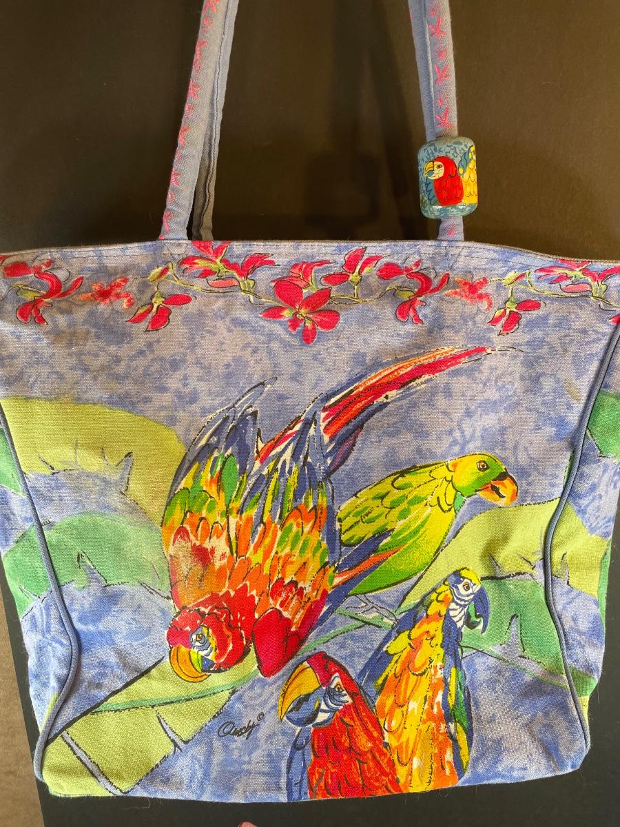 Lot 142. Lynn Chase Macaw and Beach Tote