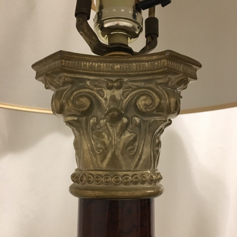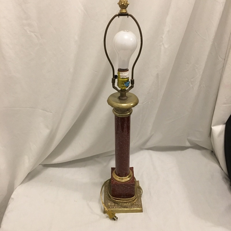 Faux stone table lamp and floor lamp. Light up your life with these two sleek lamps that complement each other very well and both have been tested and work. Floor lamp measures 57” tall.