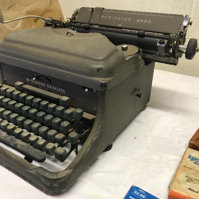 Remington noiseless typewriter has a plastic cover and appears to be in good condition. A bit dusty but overall good shape. Lot is available for local pick up in Asheville, NC only.