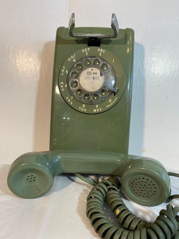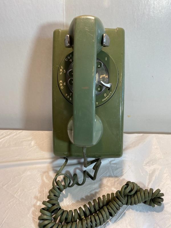 Lot 142 s Vintage Olive Wall Mount Rotary Phone Good condition Bell Western Electric