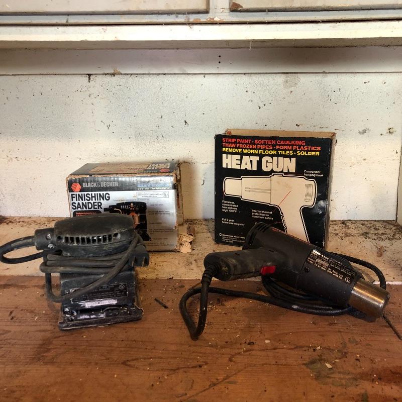 This lot includes a Black&Decker Sander, as well as a Milwaukee Heat Gun. Both have been plugged in and tested. The sander is a finishing sander and double insulated. The Heat Gun reaches temperatures of 750 to 1000 degrees, and can be used for removing floor tiles, softening caulk, and more. Local pickup only.