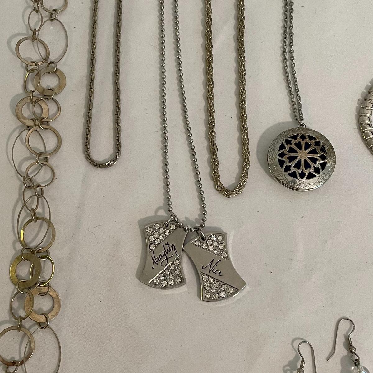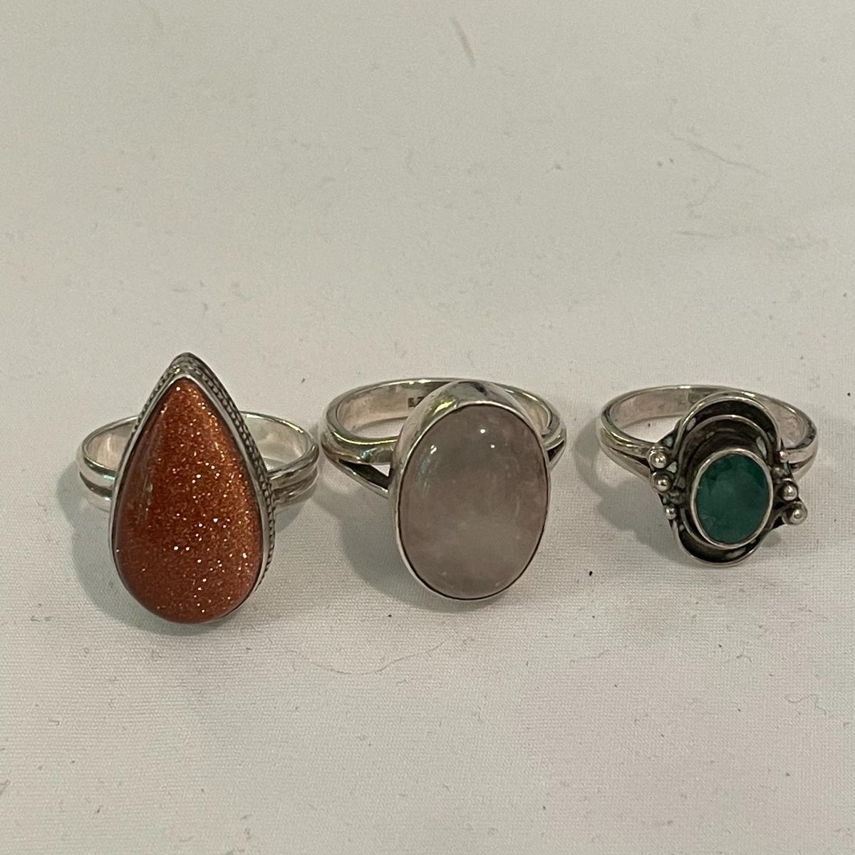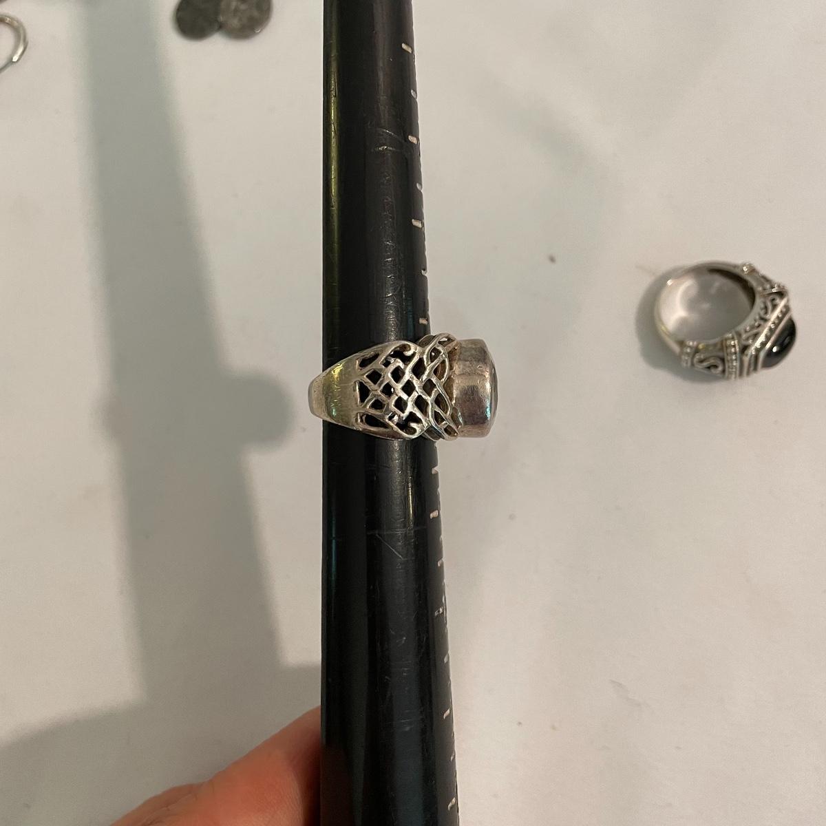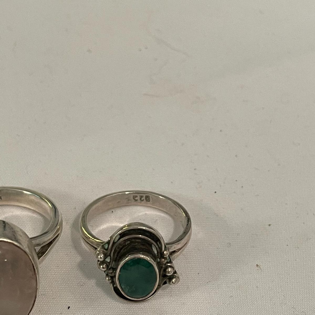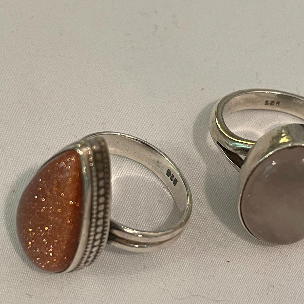 Here’s a fashionable selection of silver and silver colored jewelry to get get your looks anywhere from subtle to statement. A small selection of Silpada marked jewelry includes earrings, bracelet, three necklaces, one pendant and a ring. Other pieces marked 925 are shown in photos. A bold selection of rings with sparkles to amethyst and onyx style stones. Ring sizes shown in images. Shipping available.