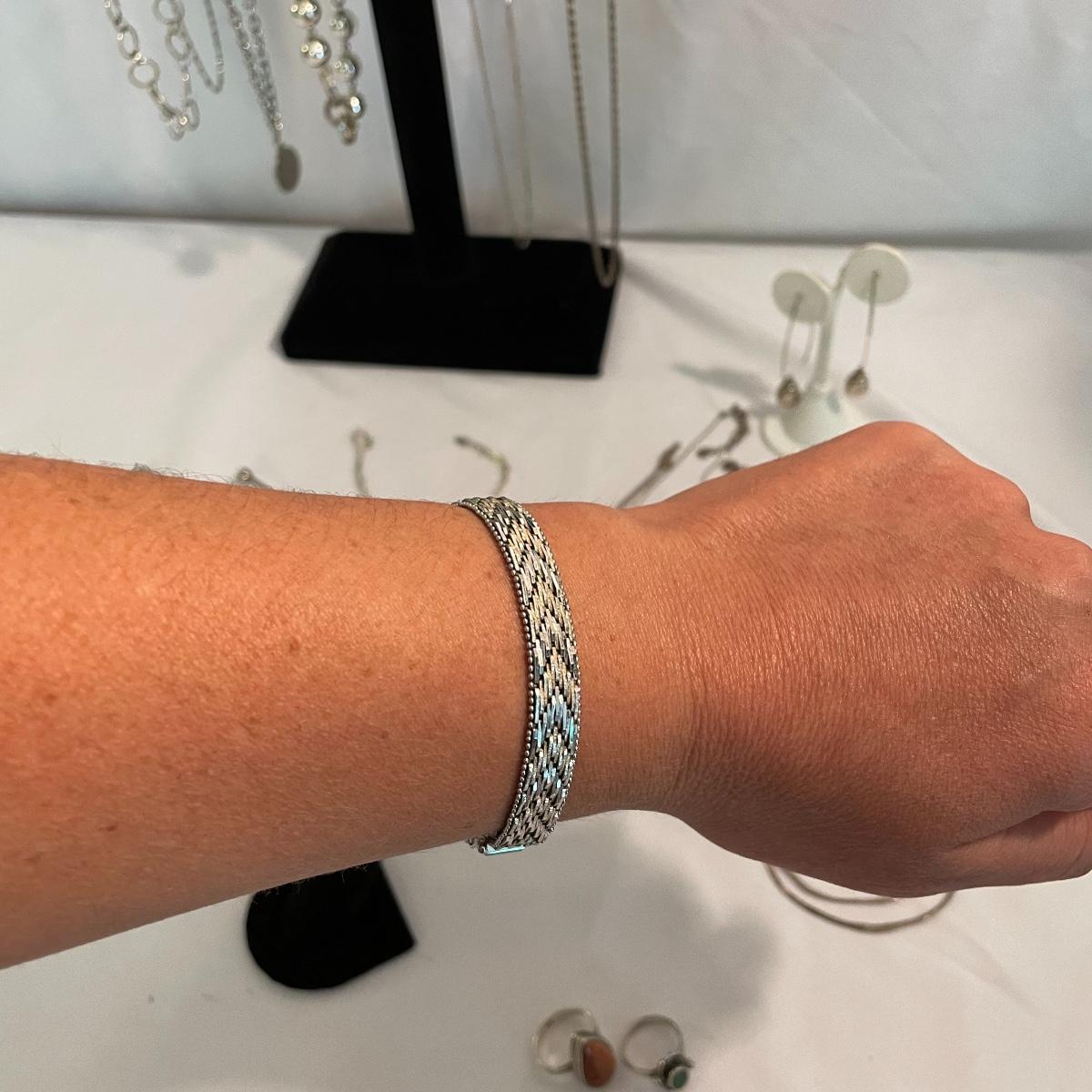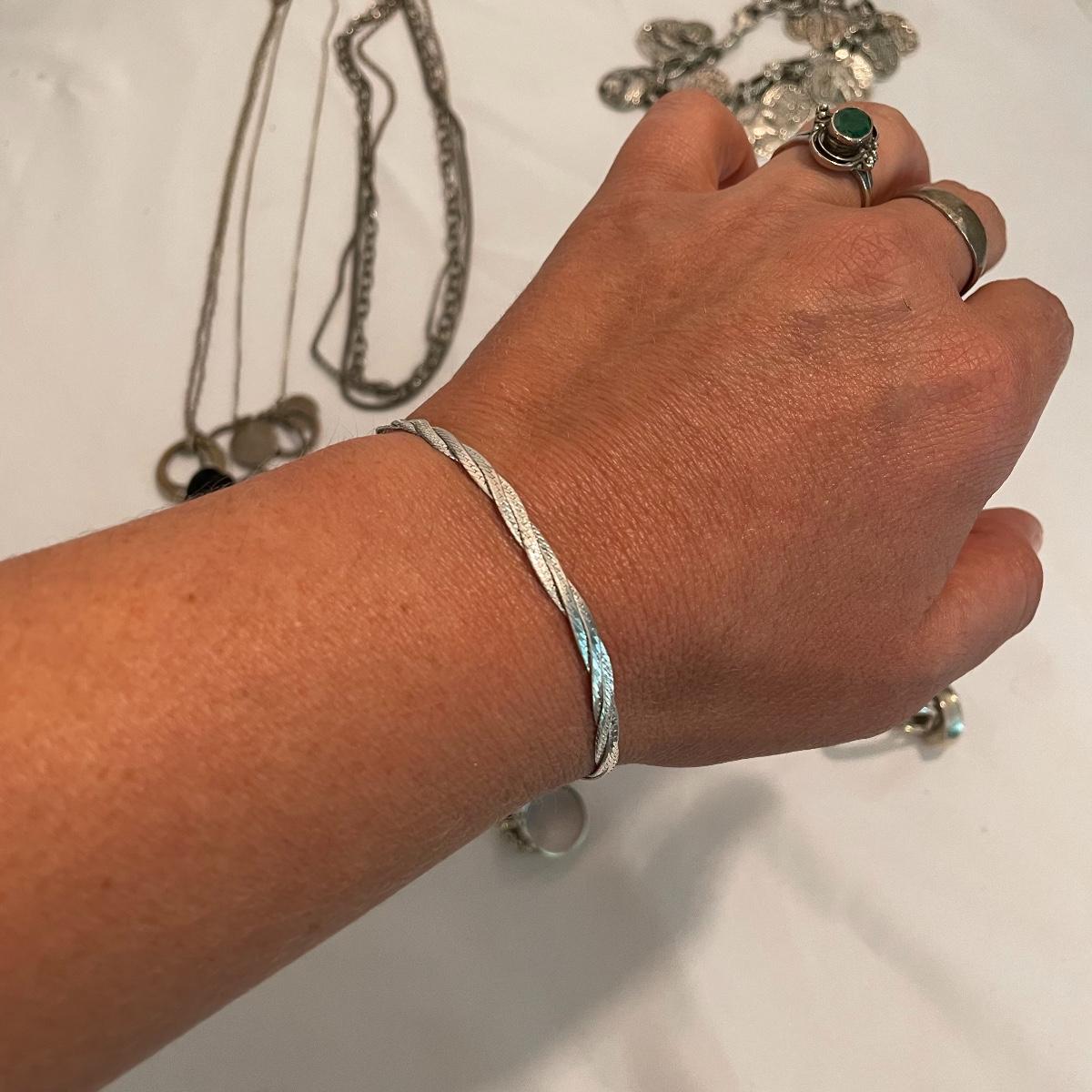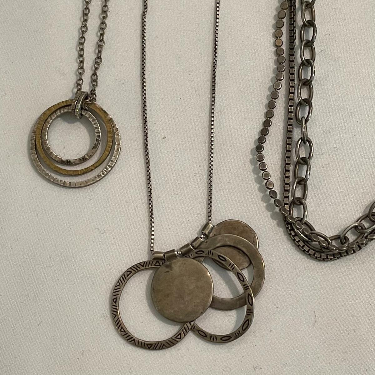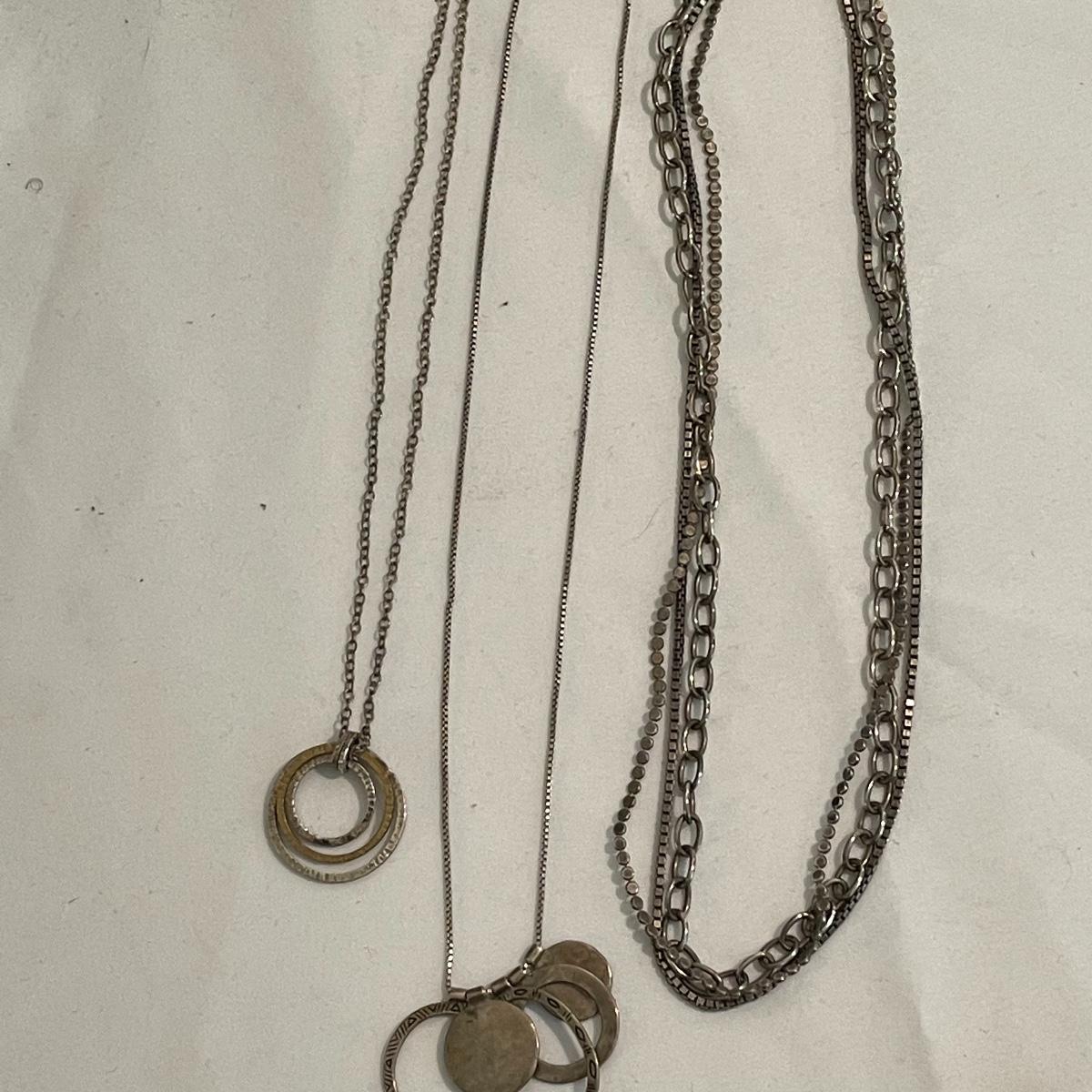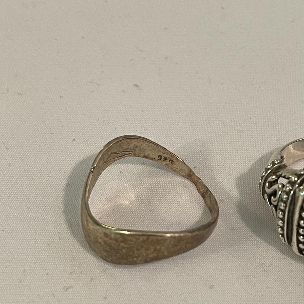 Here’s a fashionable selection of silver and silver colored jewelry to get get your looks anywhere from subtle to statement. A small selection of Silpada marked jewelry includes earrings, bracelet, three necklaces, one pendant and a ring. Other pieces marked 925 are shown in photos. A bold selection of rings with sparkles to amethyst and onyx style stones. Ring sizes shown in images. Shipping available.