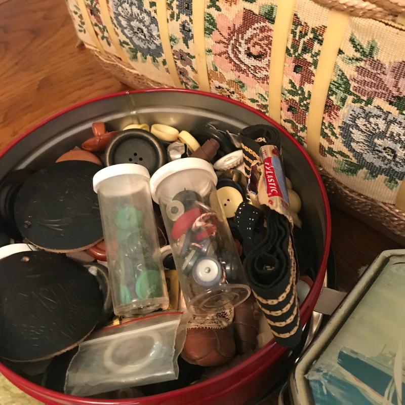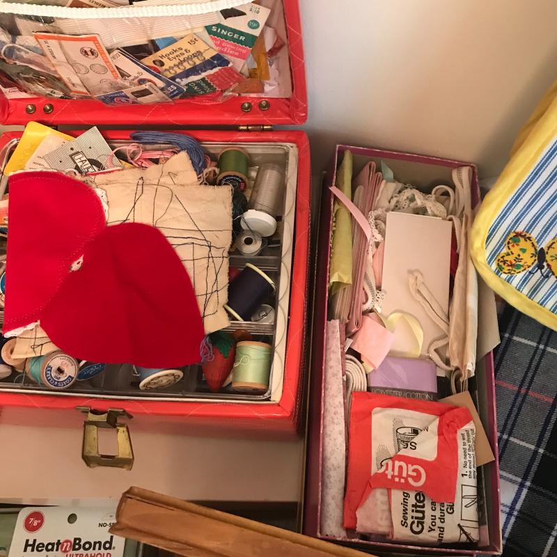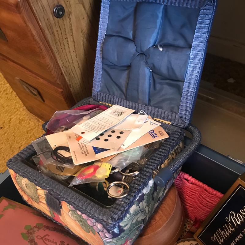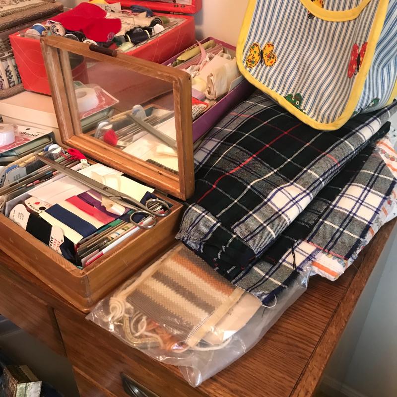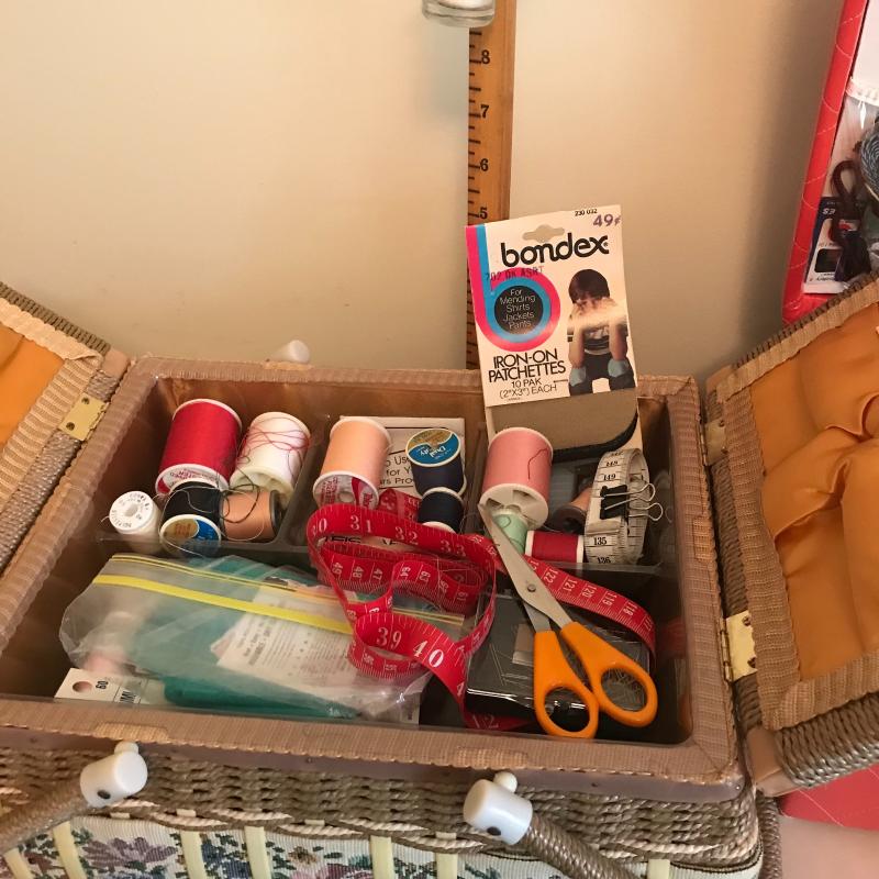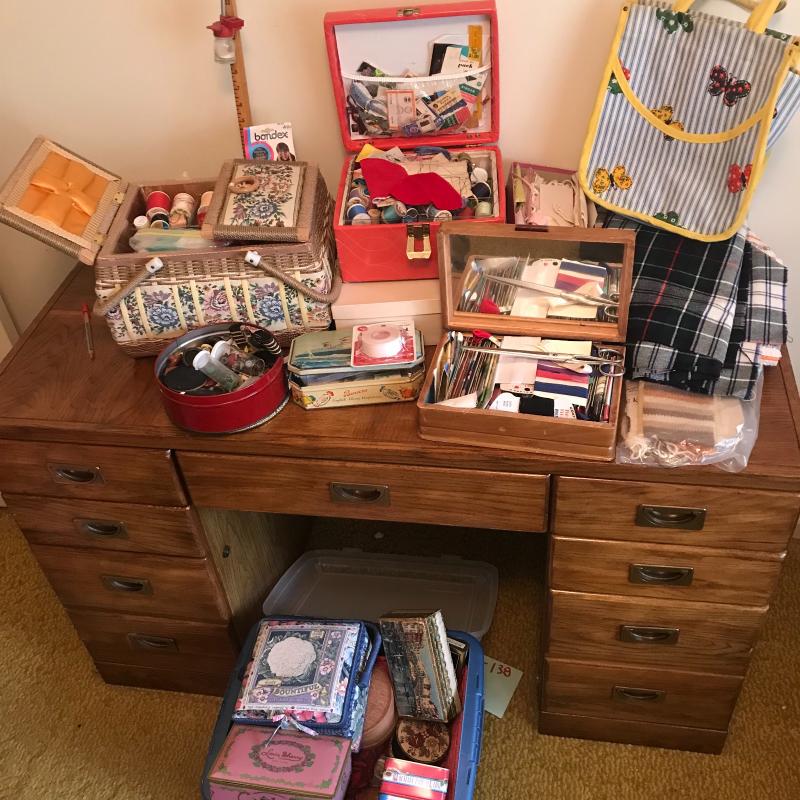Everything from thread, fabric and fabric tape to scissors and cute sewing baskets make this functioning lot a treasure for a true Sewing expert. Desk in photo not included. Local pick up only.