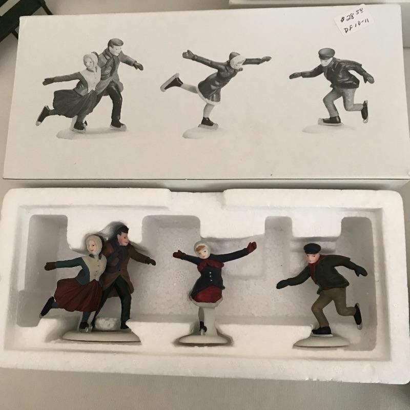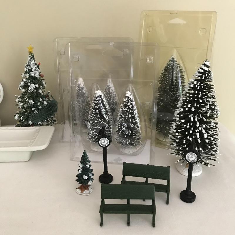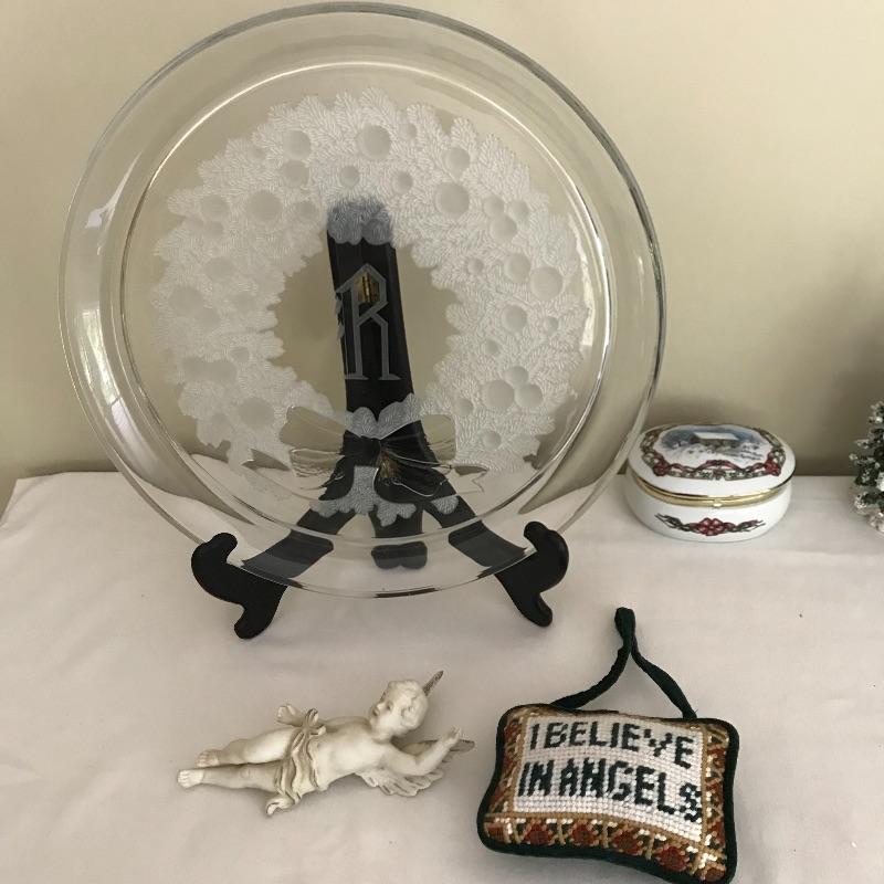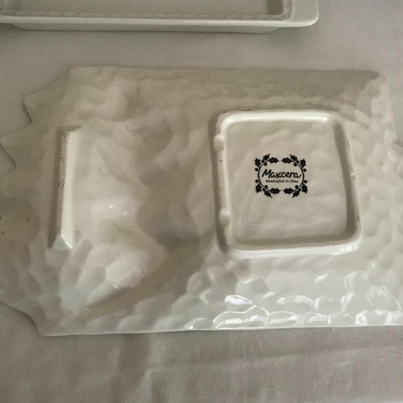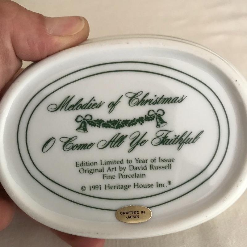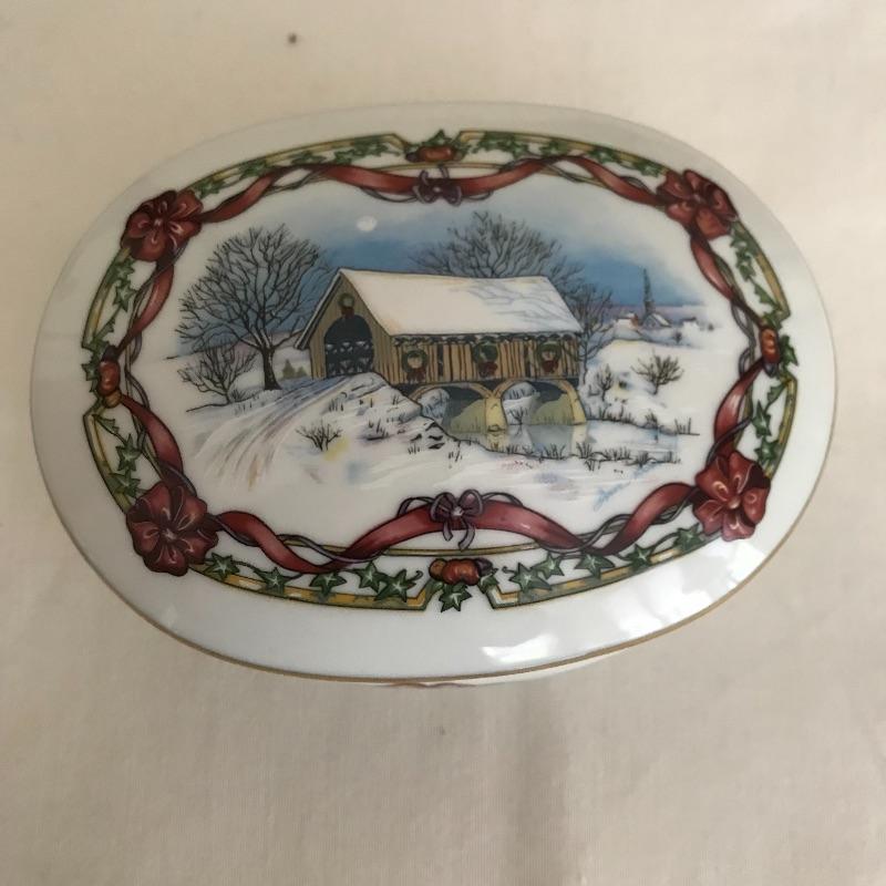 Decor and serving Christmas items to brighten up your next holiday season! Spode bell and ashtray set. Five Heritage Village collections, some figures not included, see photos. Extra mini trees, benches and clocks. Three serving platters, wine glass markers, and more! The David Russell fine porcelain music box plays beautifully. Shipping available.