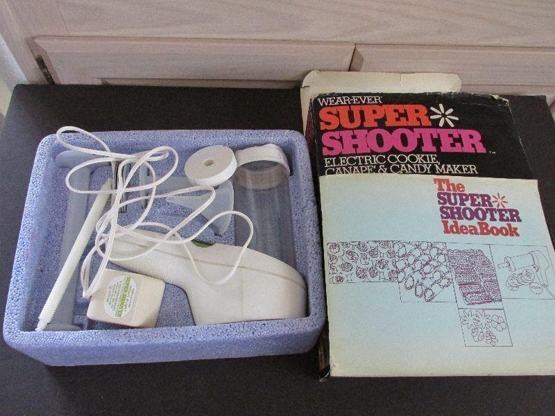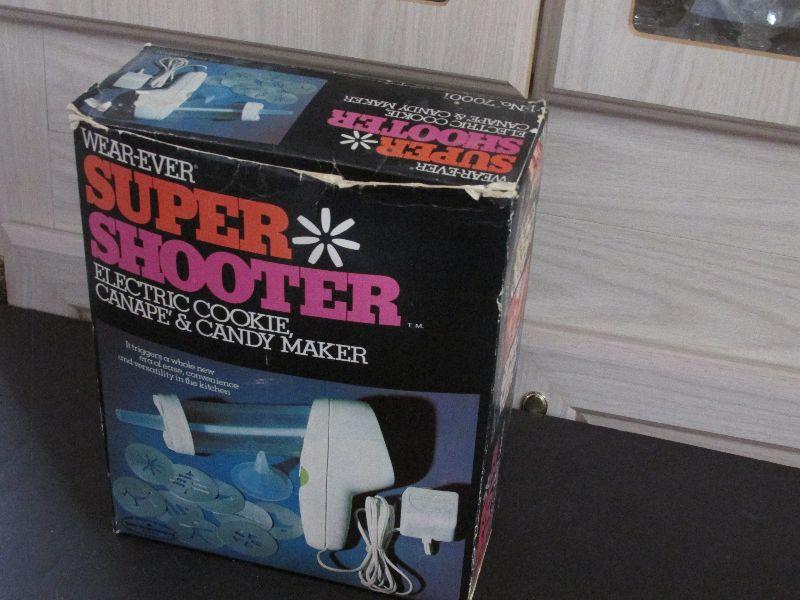 Vintage Wear Ever Super Shooter Electric Cookie, Canape, and candy maker. Vintage rarely used if at all. The box is a little beat up but all the items inside are complete and in excellent condition. Tested and powers on.