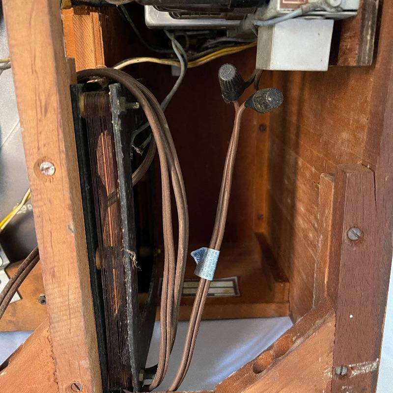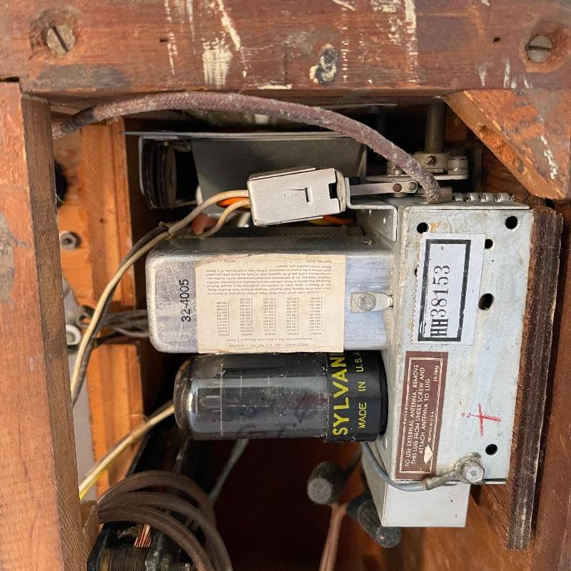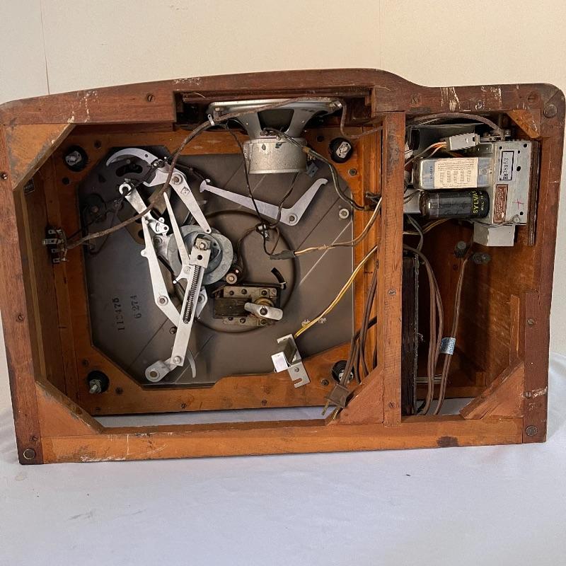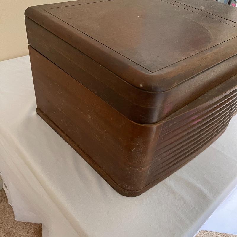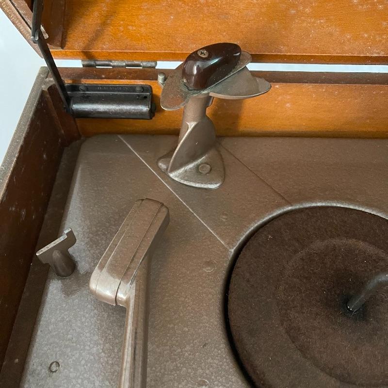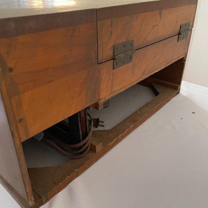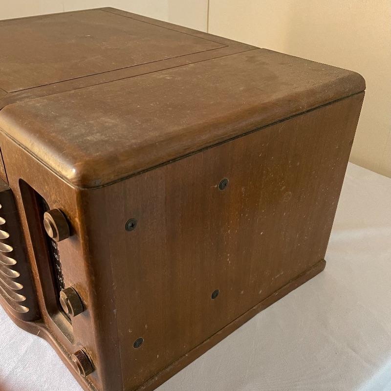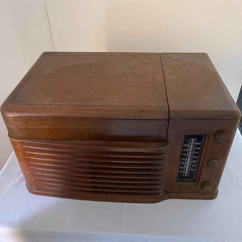 Vintage Philco phonograph/turntable and radio. Made in 1946, the model is 46-1203. The whole body is wooden and solid. Unit has plug but only makes a humming sound when plugged in.