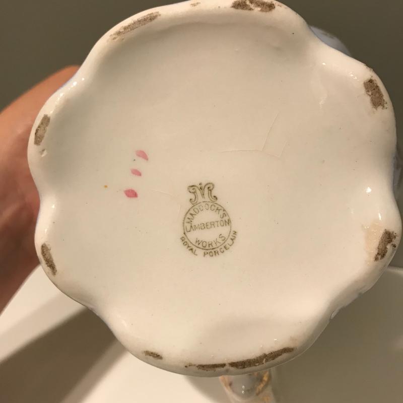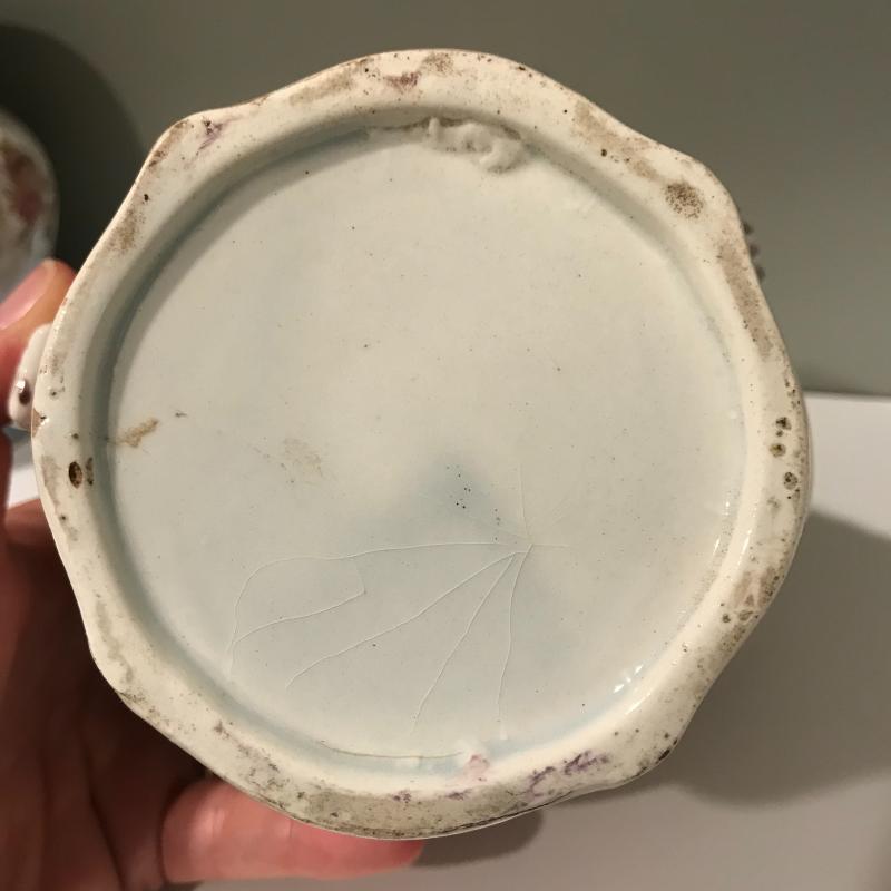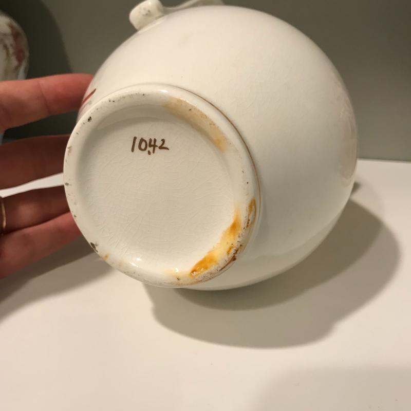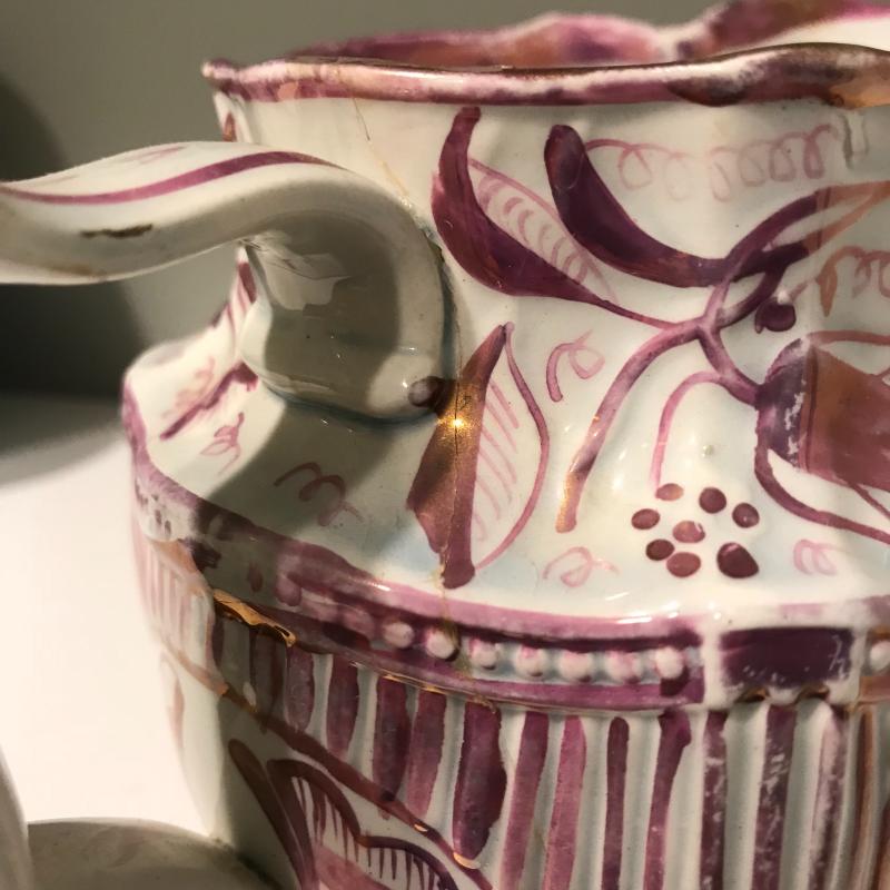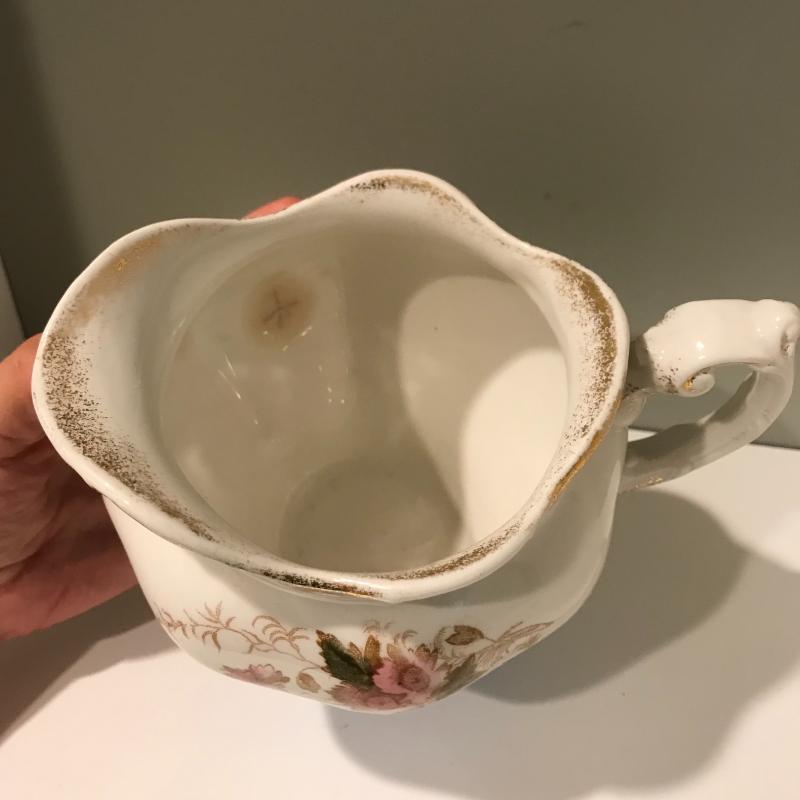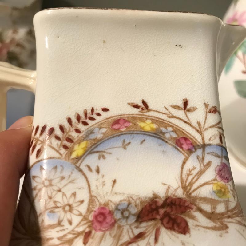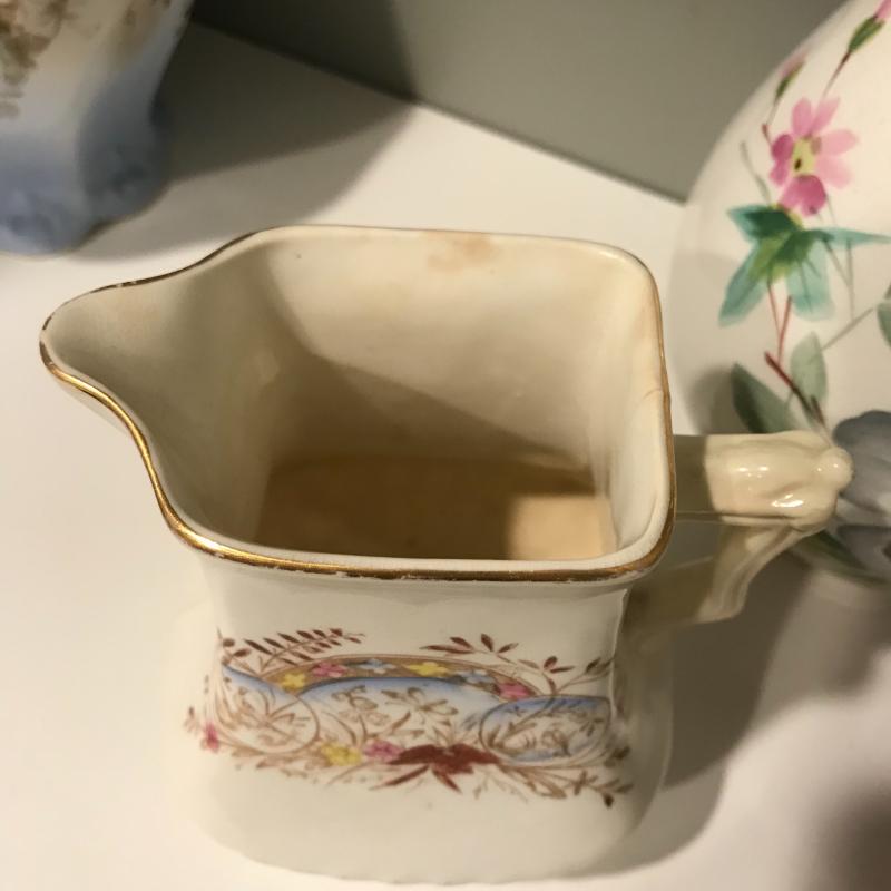 Five delicate pitchers to add to or begin your collection. The tallest measures 7”h. Some wear and cracks noted in photos. Local Pick up