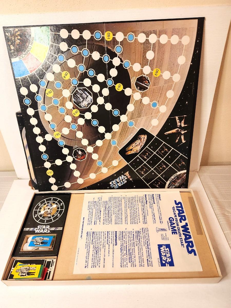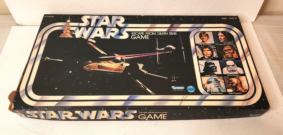 Vintage (1977) Star Wars: Escape from Death Star Board Game #40080 (Kenner) - looks complete in box. Board looks good - outside box has some wear.