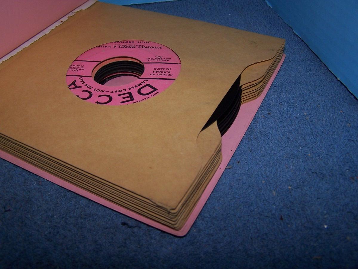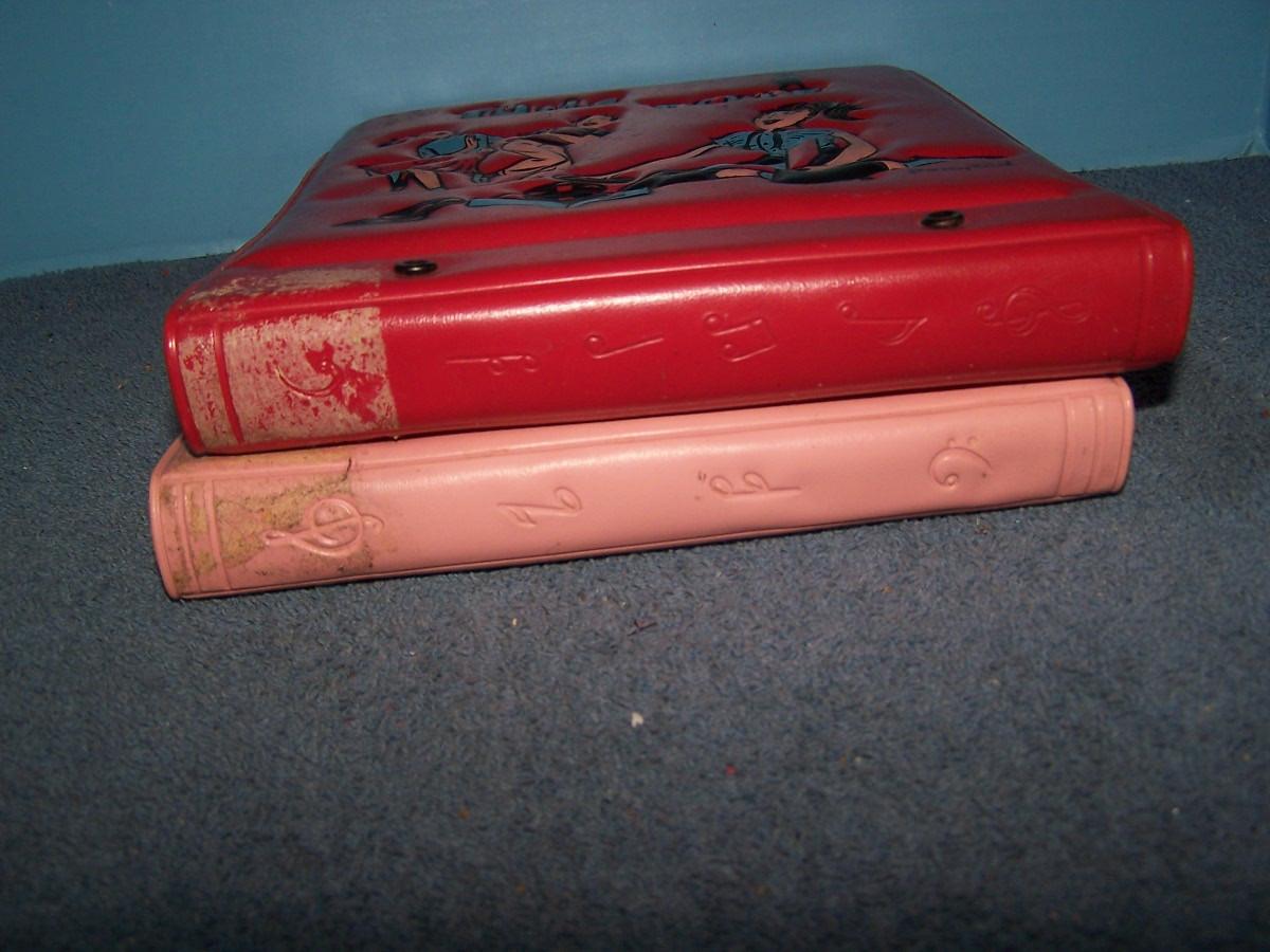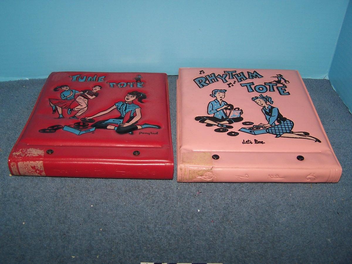 THESE ARE WONDERFUL VINTAGE MCM 2 RECORD BOOKS/CASES VINYL PONYTAIL/DATE LINE OLD 45s!!! GREAT OLD POPULAR MUSIC!!!! USED/RUBS/LIGHT WEAR/TAPE RESIDUE..