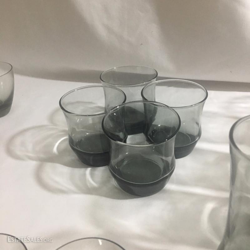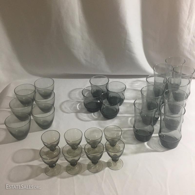 Lot 143 - 21pc China Set and Smokey Glassware Set