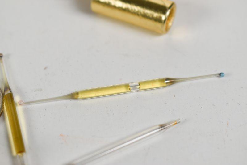 A collection of perfume nips (samples). There seem to be multiple scents as they don't all have the same color tops. **Please read Terms and Conditions before placing a bid. Pick up is Sunday, December 22 from 11am to 3pm or Monday, December 23 from 4pm-7pm in Mantua, NJ. All sales are final. All sales are as is, where is. Please review all photos. Props are not included. Measurements are approximate.