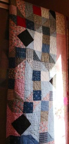 ALL MADE BY HAND. THIS AMISH QUILT IS IN GOOD-VERY GOOD CONDITION AND APPEARS TO BE A QUEEN SIZE