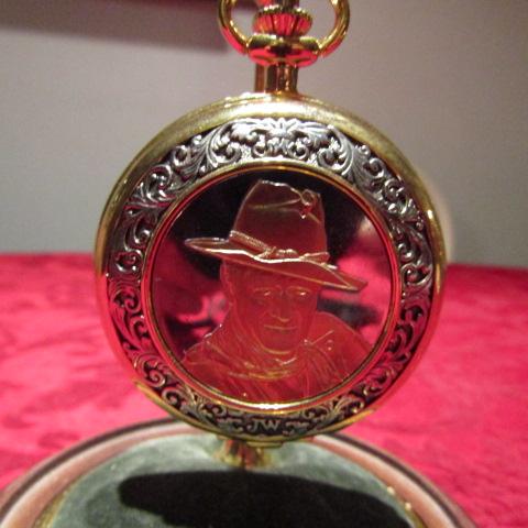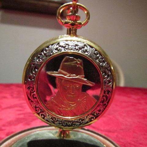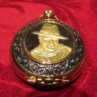 FRANKLIN MINT JOHN WAYNE "THE DUKE" POCKET WATCH IN VERY GOOD CONDITION