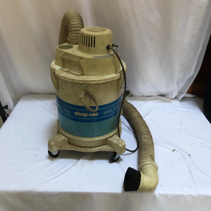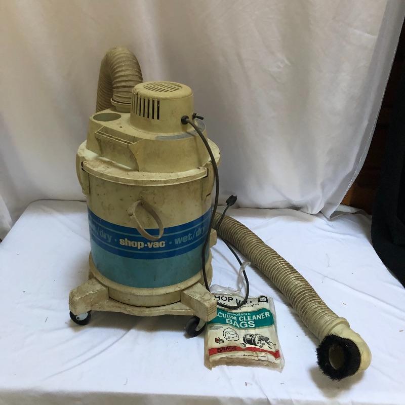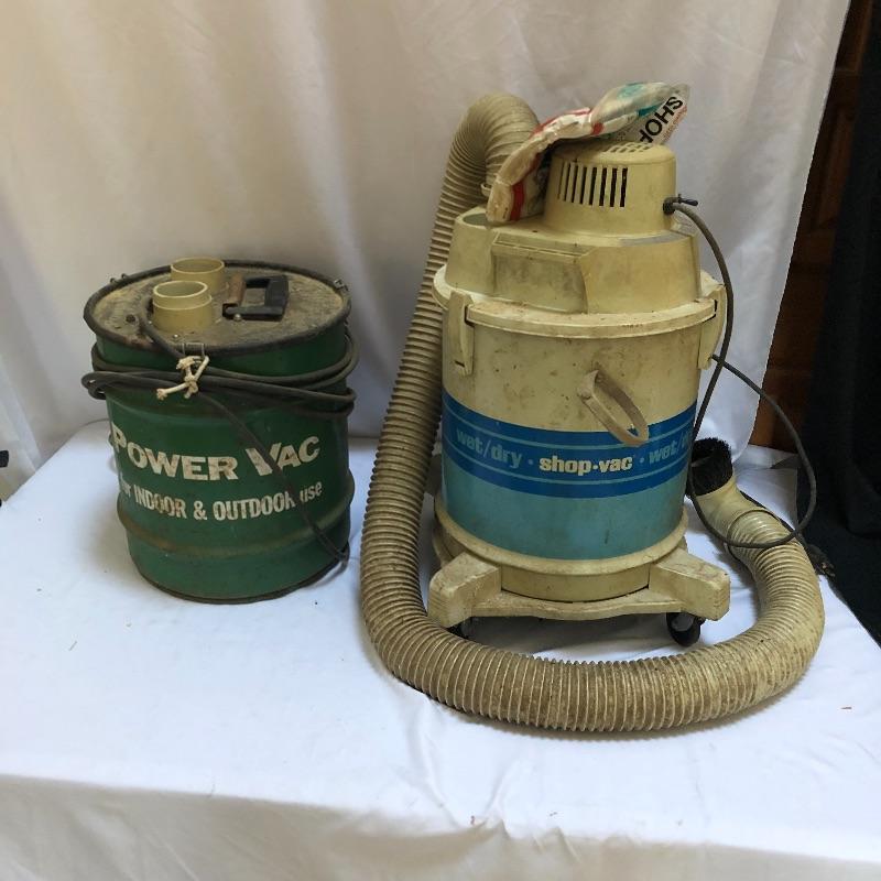 Keep your shop clean or mop up a leak with this pair. Lot includes one Shop Vac brand vacuum with hose and bags. Also includes Power Vac wet dry vacuum with no attachments. Both machines worked when tested.