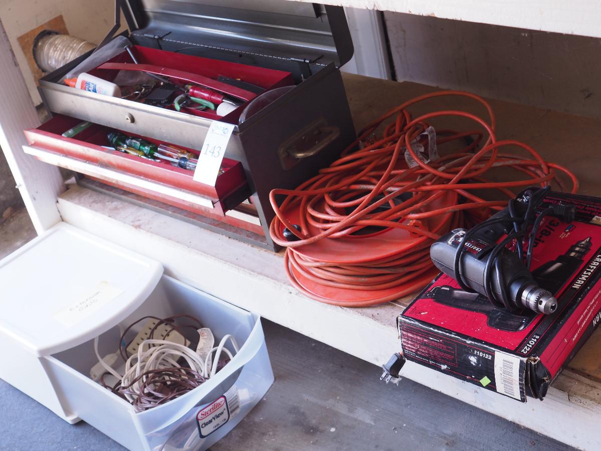 Lot 143 Craftsman vintage tool chest, tools extension cords