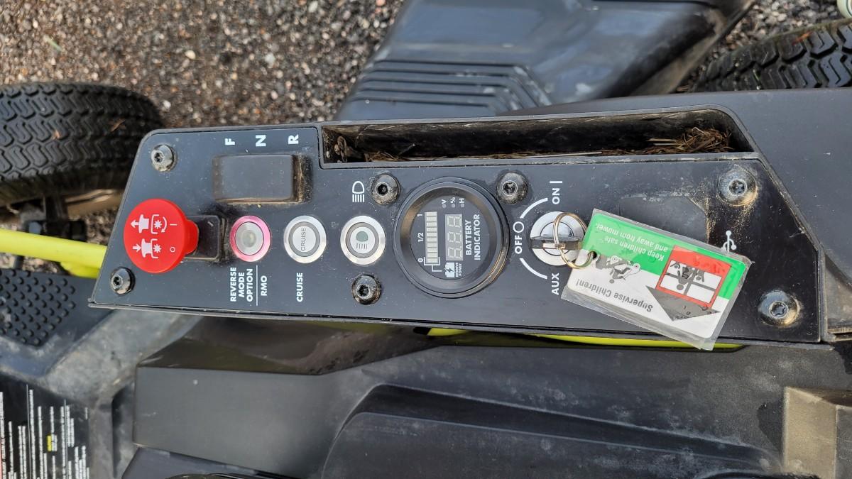 STARTS RIGHT UP, CURRENTLY CHARGED TO 48% AND TESTED THE MOW FUNCTION AND IT CUT THE TEST PATCH OF GRASS QUITE WELL. NO NOISE TO BOTHER YIUR NEIGHBORS, ZERO EMISSIONS AND NO NEED FOR OIL/GAS! THESE SELL NEW FOR $3,000+ AT HOME DEPOT AND ARE THEIR TOP OF THE LINE RIDING ELECTRIC MOWER OPTION. THE BAG SYSTEM COSTS AN ADDITIONAL $350+ TAX IN STORES. READY TO ENJOY.