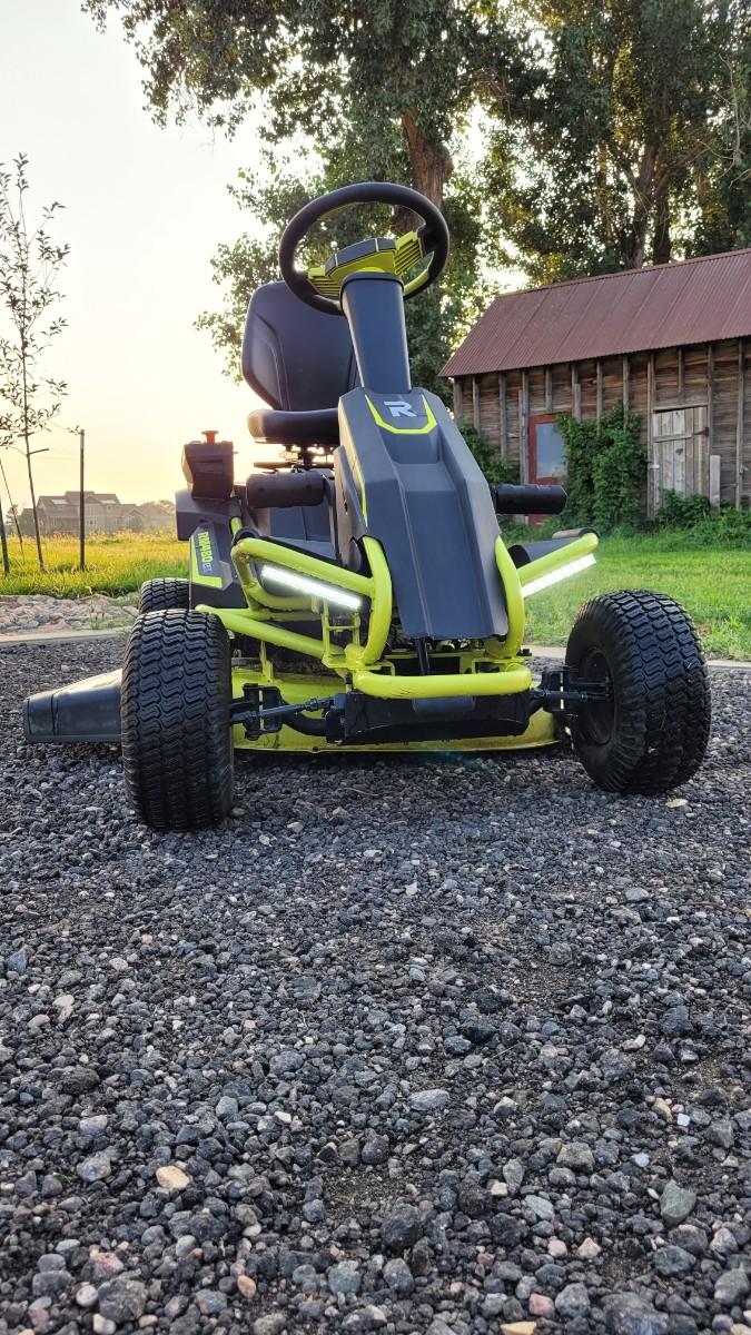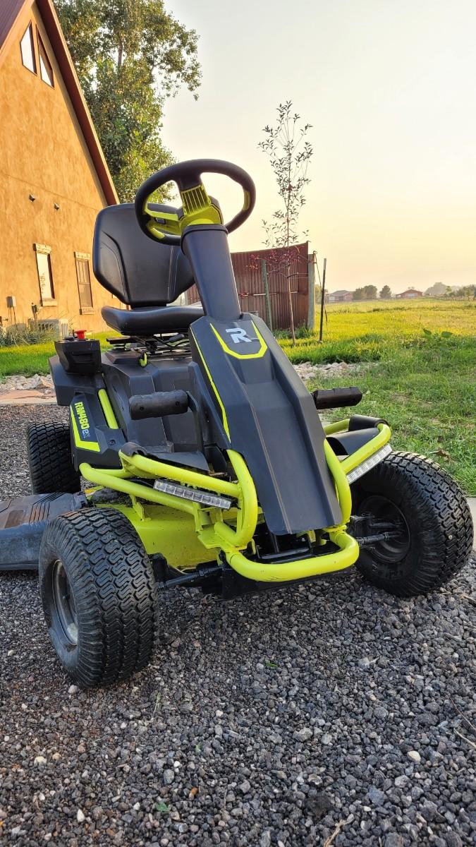 Get a green alternative to a traditional riding lawn mower with the RYOBI 48-Volt Riding Lawn Mower. Instead of traditional gas it is powered with 100Ah lead acid batteries that offer two and a half hours of run time. It is quiet and emits 70 dB to allow for mowing without disturbing your neighbors. It's also equipped with LED headlights, a USB phone charger and a cruise control feature. Get a clean, level cut with the 38 in. 2-blade deck with a 12-position manual adjustment. The rear access charging port makes charging your rider easy when the job is done.