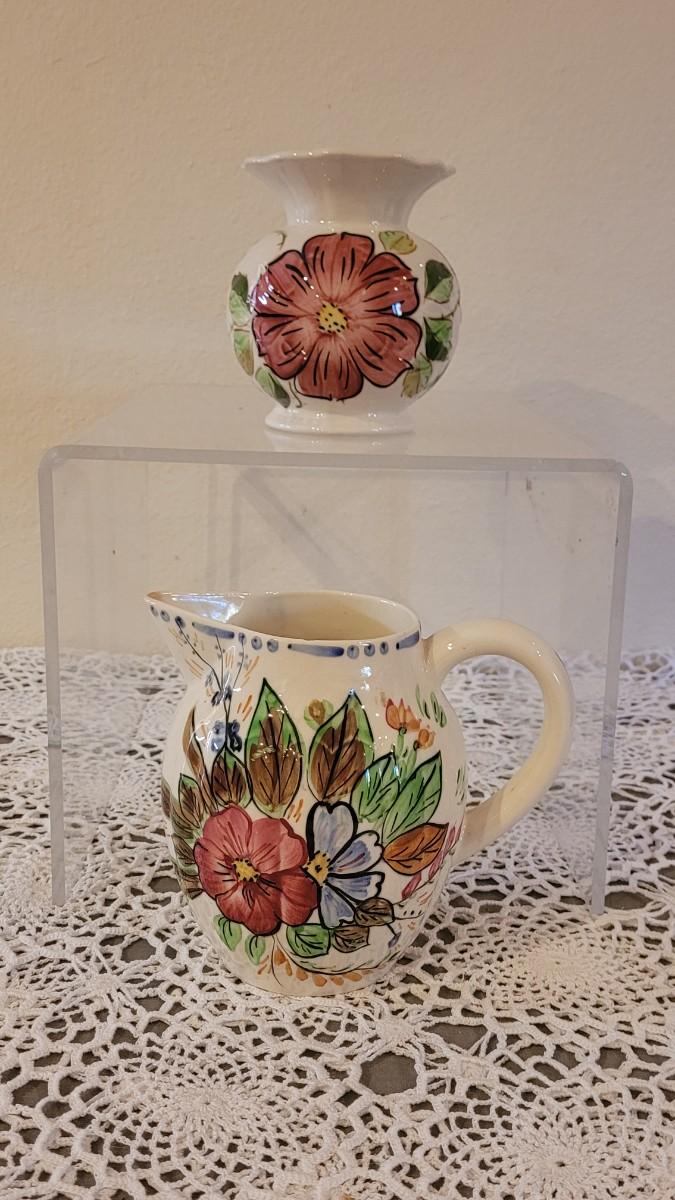 Lot 143: (2) Blue Ridge Handpainted Pottery Pitcher & Vase