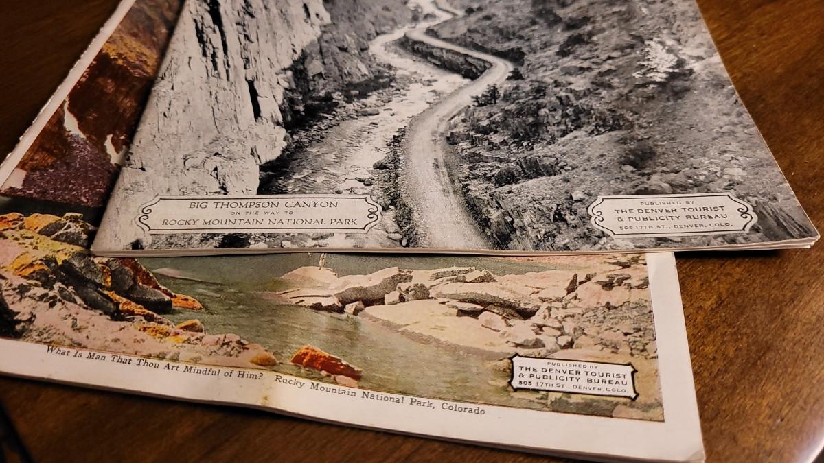 These two volumes feature the Rocky Mountain National Park + The Big Thomoson Canyon on the front. Both are FILLED with pictures of Early Colorado. Both in great shape for age.