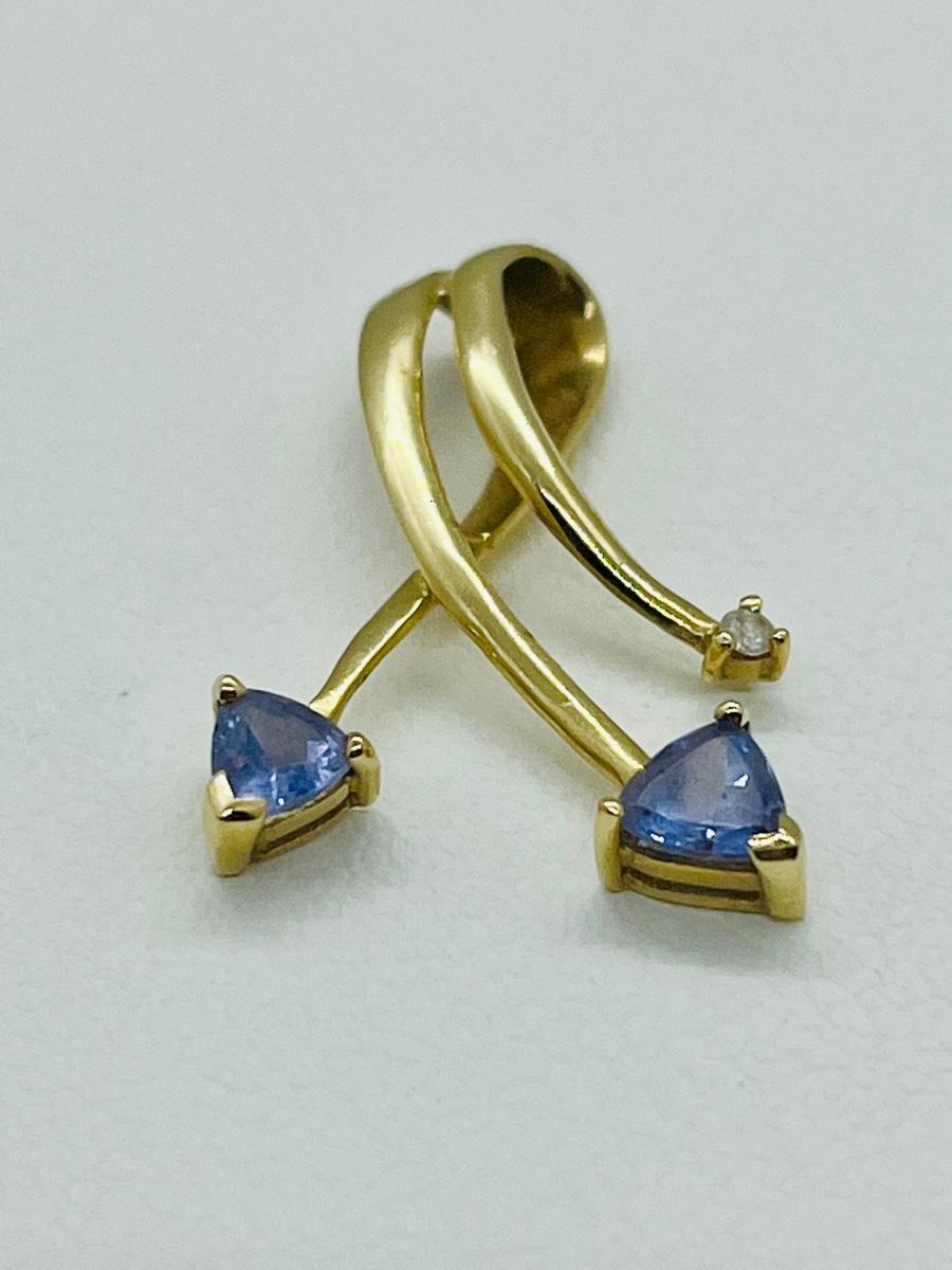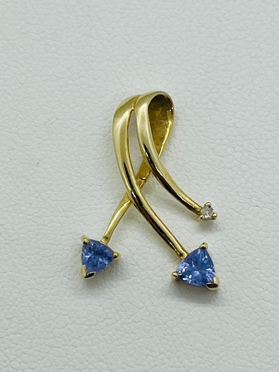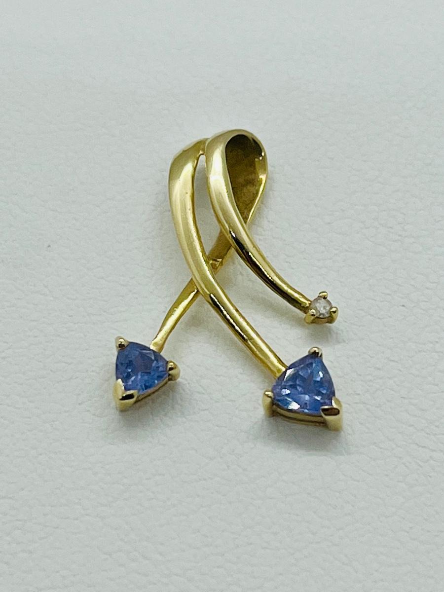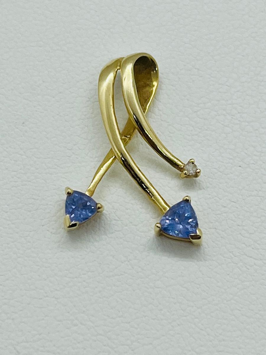 Lot 143: 14k STS  Two Trillion Cut Tanzanites & Small Diamond Chip