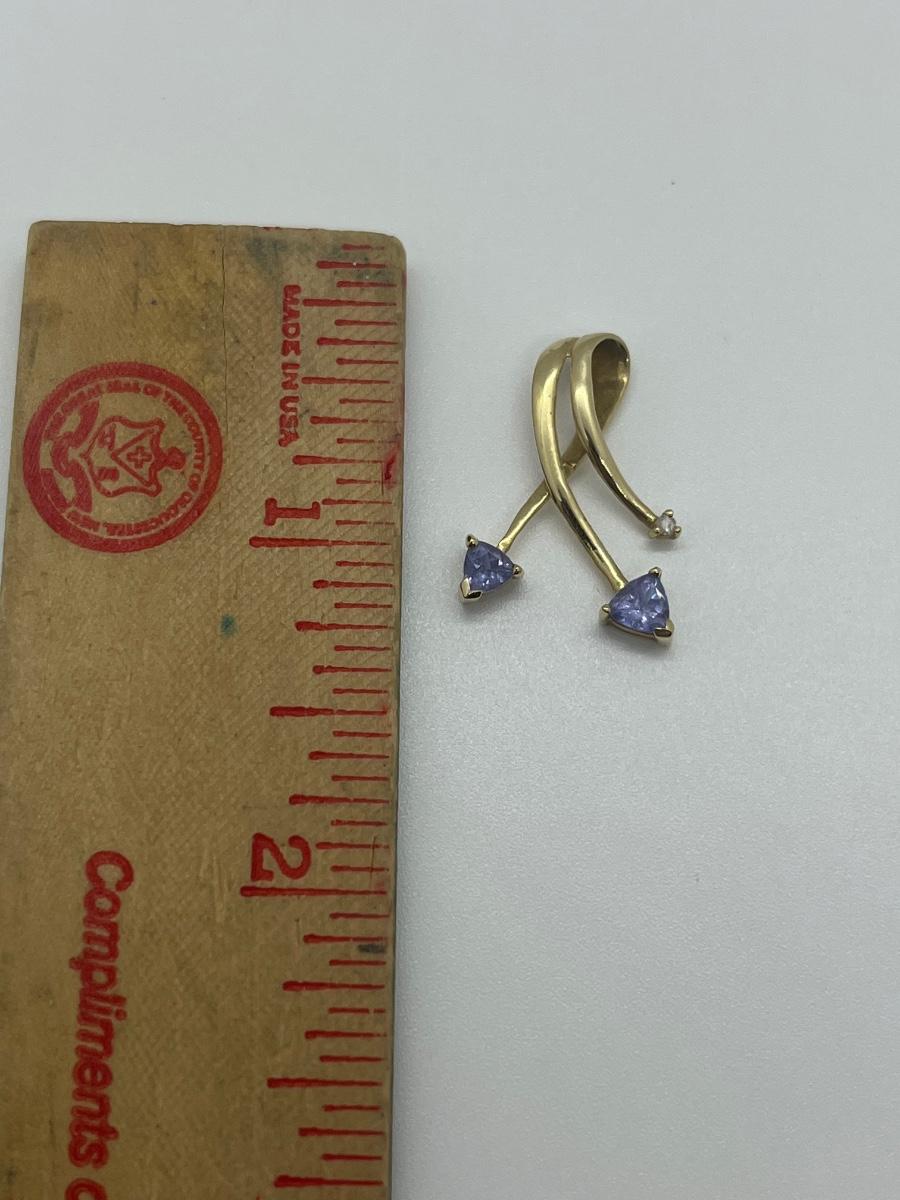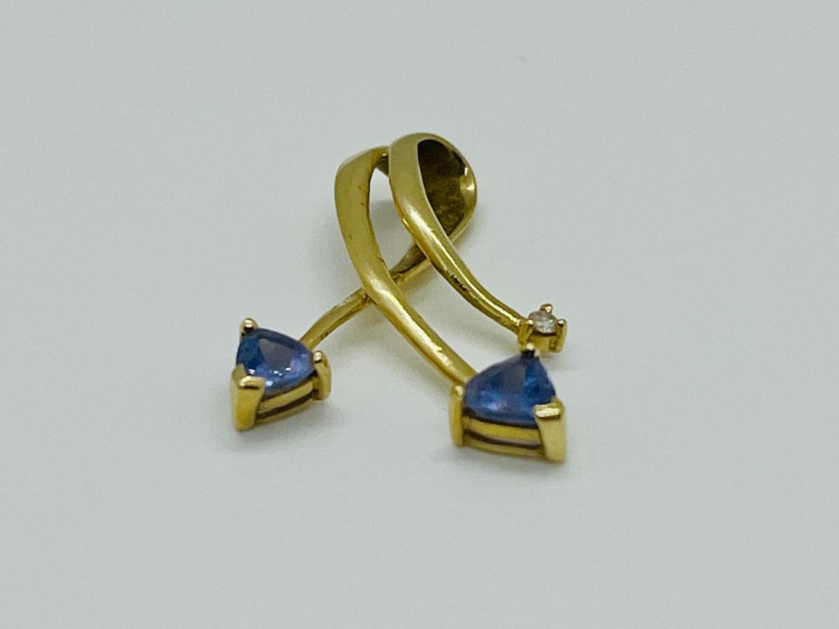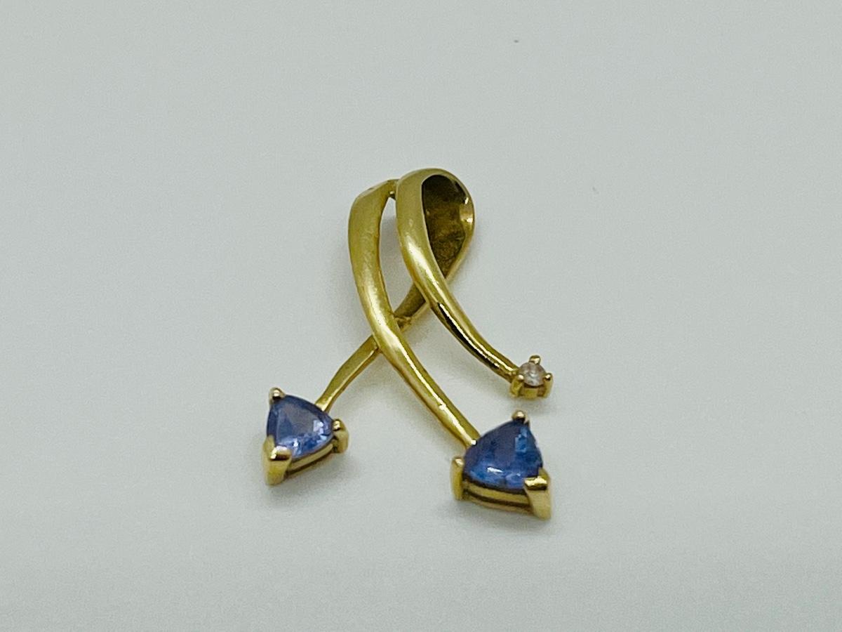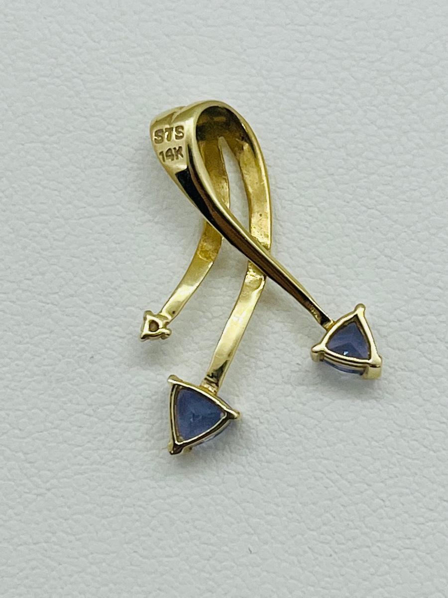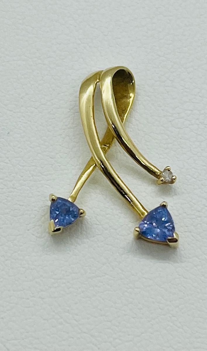 Lot 143: 14k STS  Two Trillion Cut Tanzanites & Small Diamond Chip