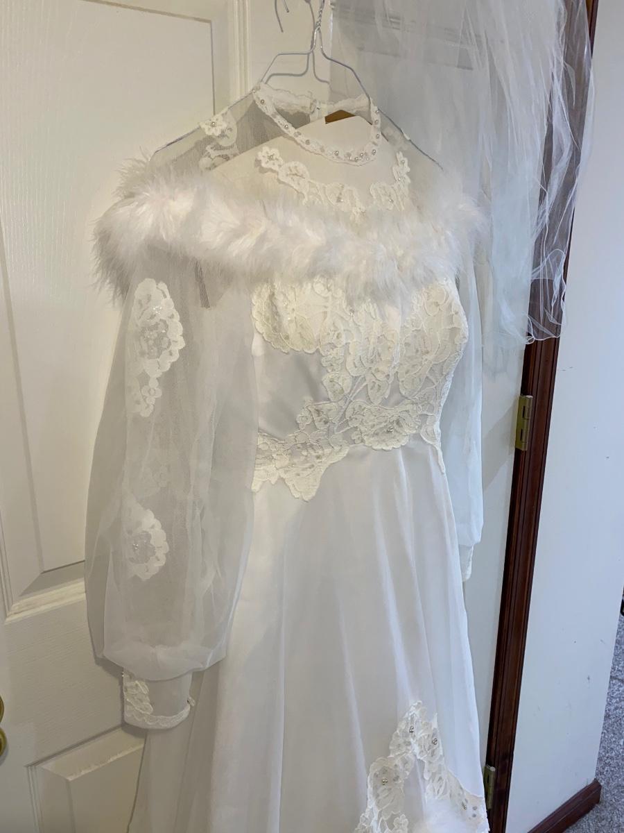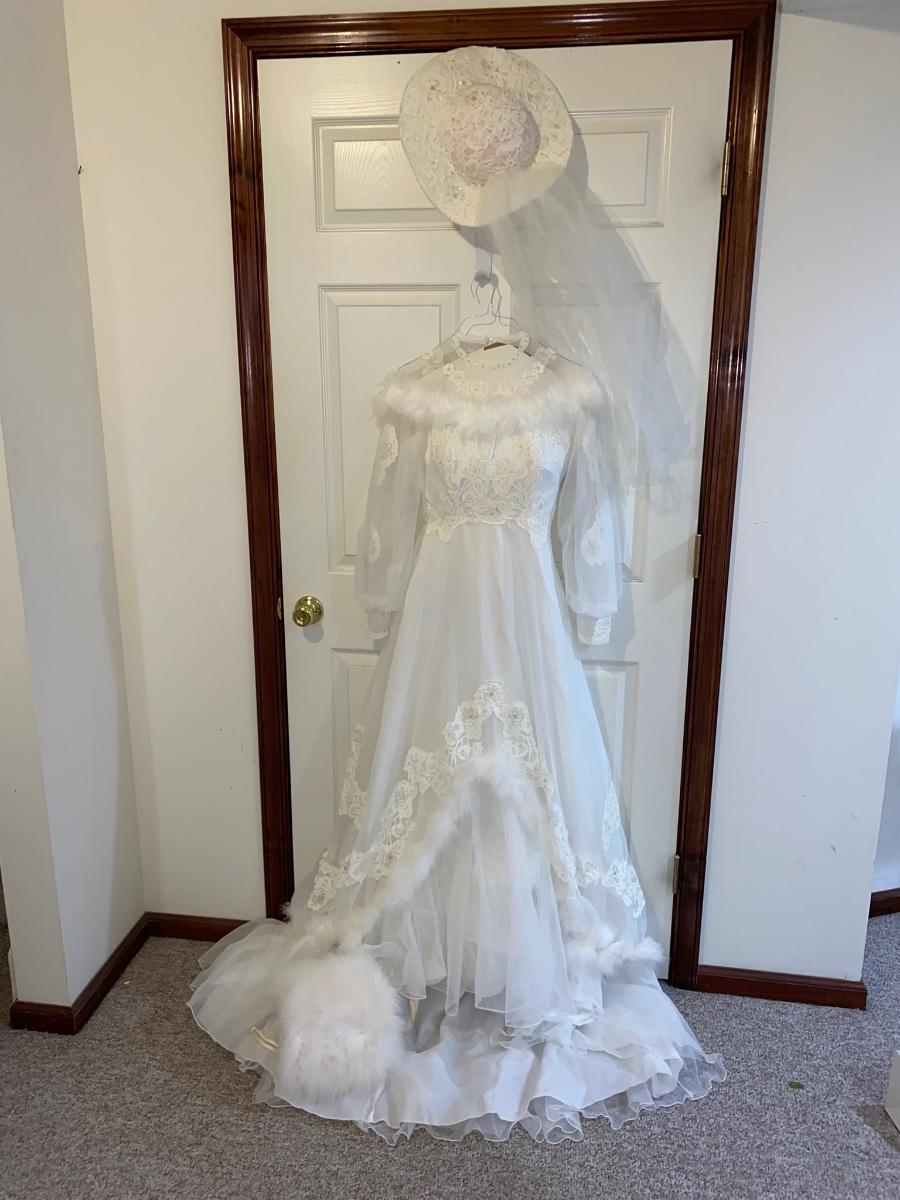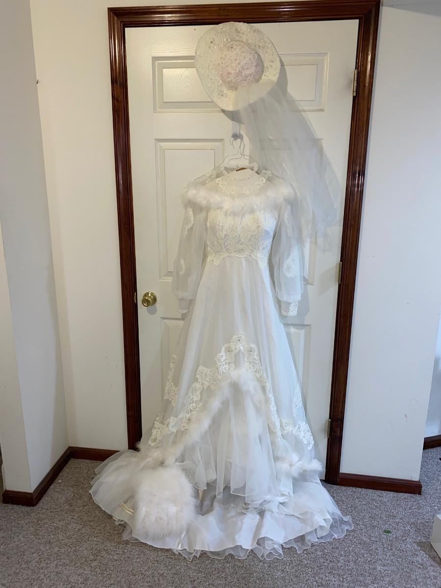 Lot 143: Vintage Wedding Gown, Hat & Muff