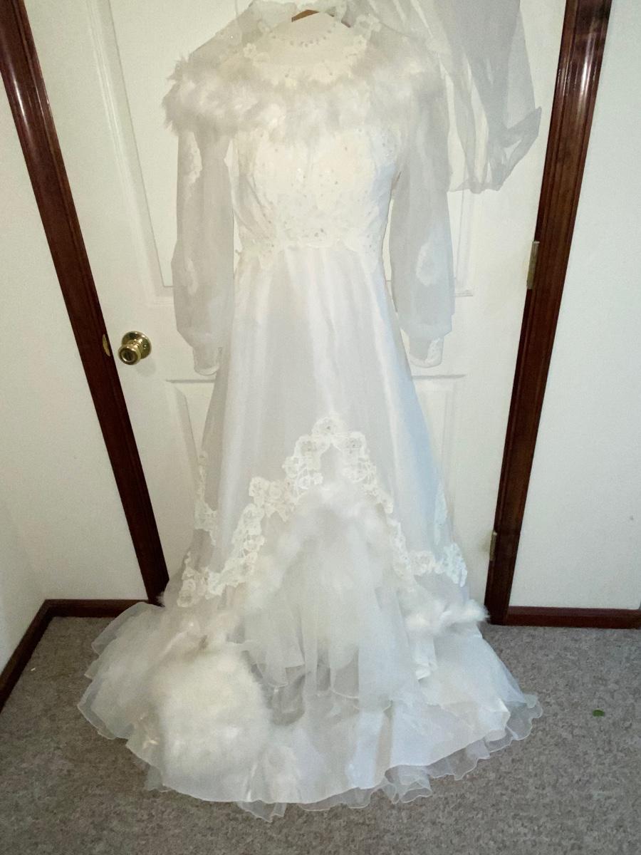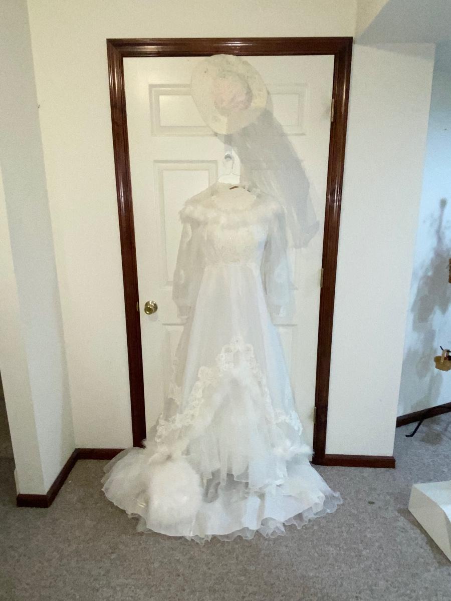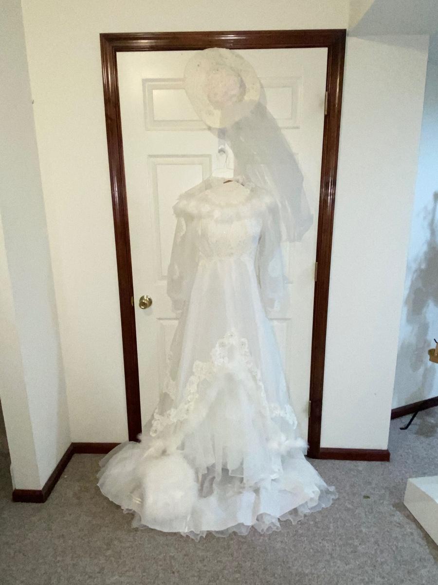 Lot 143: Vintage Wedding Gown, Hat & Muff