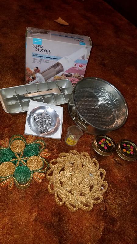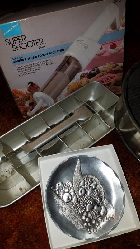 Ice tray vintage metal, Super Shooter, Cookie Press, cake decorator and more