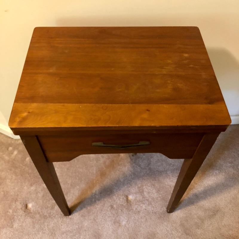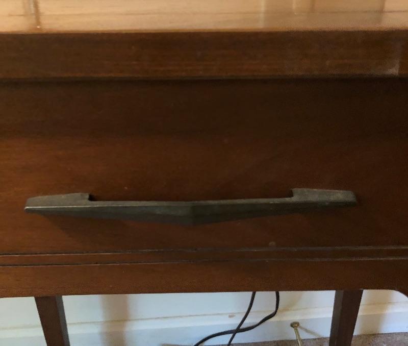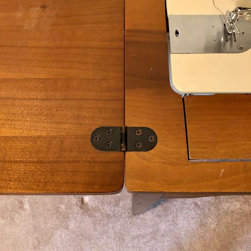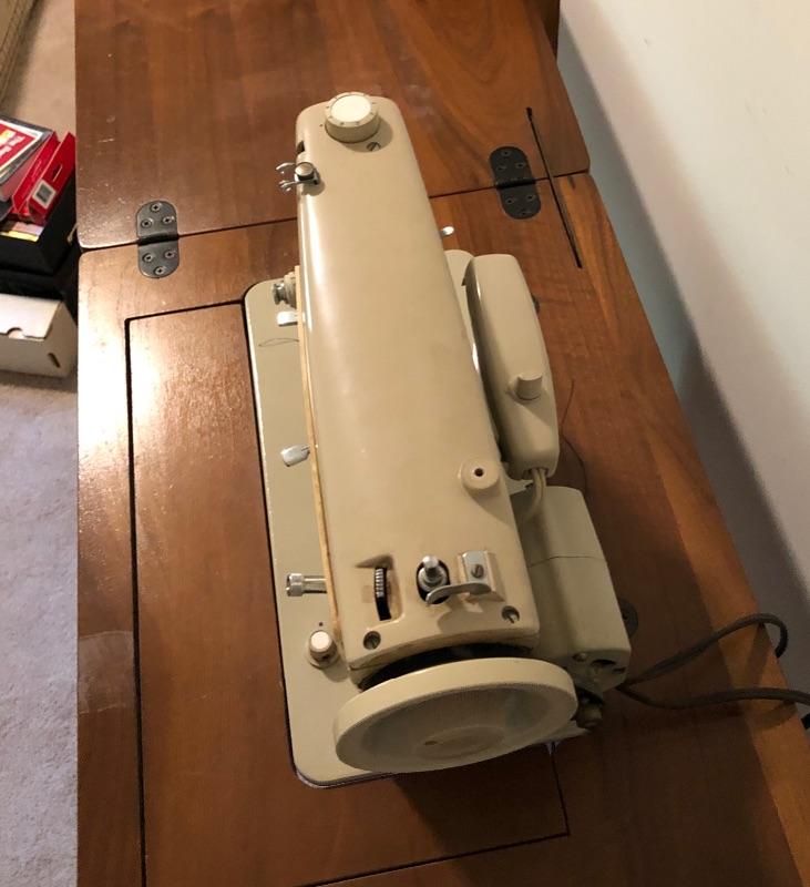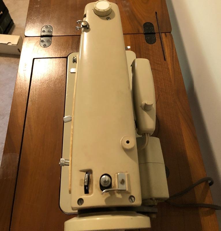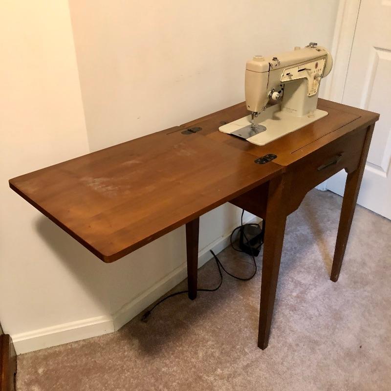 This 1960’s vintage sewing machine folds neatly and easily down inside the table leaving a perfect sized small table with a MCM look. Amazingly, it comes with its original manual. The Zig Zag singer sewing machine appears to have all items And turns on when plugged in. Owner said it was not In working order So we aren’t sure what is not working. A few minor wear marks are on the table top when it is open, see images.